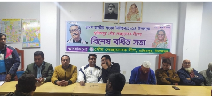 বৃহস্পতিবার (১৪ ডিসেম্বর) বাদ মাগরিব হাকিমপুর উপজেলা আ’লীগের দলীয় কার্যালয়ে পৌর স্বেচ্ছাসেবক লীগের আয়োজনে এই বিশেষ বর্ধিত সভা অনুষ্ঠিত হয়।