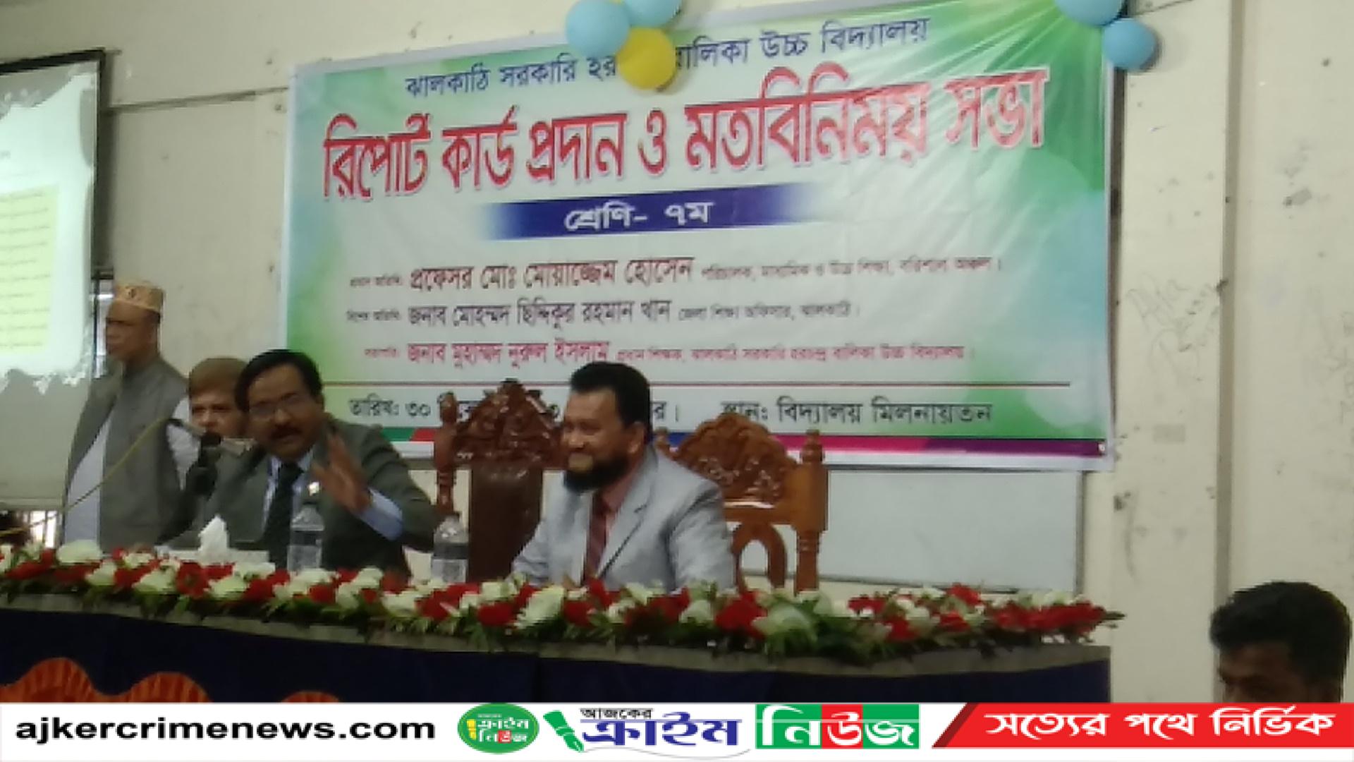 ঝালকাঠি প্রতিনিধি :ঝালকাঠি হরচন্দ্র বালিকা বিদ্যালয়ের ৭ম শ্রেণীর রিপোর্ট কার্ড প্রদান ও মতবিনিময় সভা অনুষ্ঠিত হয়েছে শনিবার বিকেল ৪টায় স্কুলের হল রুমে।