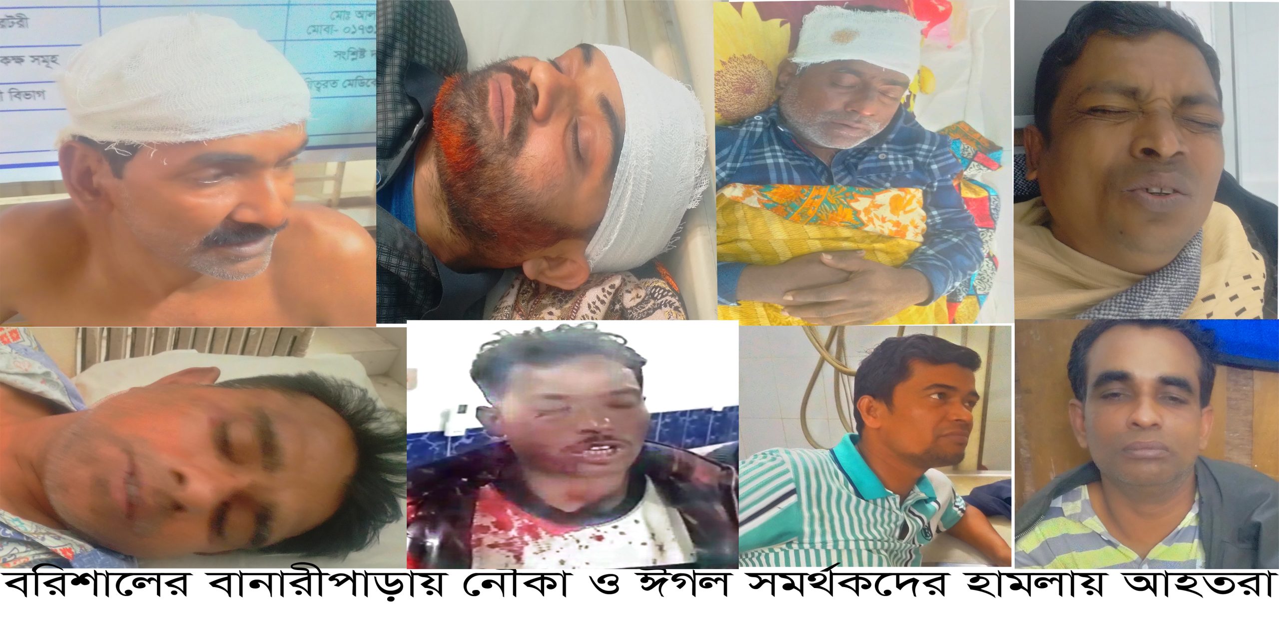 শান্তির জনপদ বরিশালের বানারীপাড়ায় নির্বাচনী সংঘাত-সহিংসতায় হঠাৎ করে অশান্ত হয়ে উঠেছে। ১৪ দলীয় জোটের প্রার্থী ওয়ার্কার্স পার্টির সভাপতি রাশেদ খান মেননের নৌকার সমর্থকদের ওপর স্বতন্ত্র প্রার্থী শেরে বাংলার দৌহিত্র একে ফাইয়াজুল হক রাজুর ঈগল প্রতীকের সমর্থকদের হামলা ও পাল্টা হামলার ঘটনায় ইউপি চেয়ারম্যানসহ ১৫-১৬জন নেতা-কর্মী আহত হয়েছেন। এসময় ১৪/১৫টি মটরসাইকেল পুড়িয়ে দেওয়া হয়েছে। ২ জানুয়ারী মঙ্গলবার দুপুরে উপজেলার বিশারকান্দি ইউনিয়নের বটতলা ও বাইশারী ইউনিয়নের পশ্চিম বাইশারী এলাকায় এ ঘটনা ঘটে। নির্বাহী ম্যাজিষ্ট্রেটের নেতৃত্বে ঘটনাস্থলে পুলিশ,র্যাব,বিজিবি ও আনসার সদস্যরা গিয়ে পরিস্থিতি নিয়ন্ত্রণে আনে। হামলায় গুরুতর আহত নৌকার সমর্থক বানারীপাড়া সদর ইউনিয়ন যুবলীগের সাবেক সাধারণ সম্পাদক মনির মল্লিক,উপজেলা ছাত্রলীগের সাবেক যুগ্ম আহবায়ক মু মুন্তাকিম লস্কর কায়েস,যুবলীগ নেতা মাসুম বিল্লাহ,আতিক বাপ্পী,মনির খান,পলাশ খান,সিরাজুল ইসলাম মিঠু,রাজু,শামীম,মিলন,জুয়েল ডাকুয়া,মনির খলিফা,মাসুম খান,রোকনুজ্জাামান রাসেল ও সিরাজ ফকির এবং ঈগলের সমর্থক সাইজউদ্দিনকে উপজেলা স্বাস্থ্য কমপ্লেক্সে ভর্তি ও চিকিৎসা দেওয়া হয়েছে। এছাড়া বিশারকান্দি ইউপি চেয়ারম্যান ও উপজেলা আওয়ামী লীগের কোষাধ্যক্ষ সাইফুল ইসলাম শান্ত প্রাথমিক চিকিৎসা নিয়েছেন। ইউপি চেয়ারম্যান সাইফুল ইসলাম শান্ত জানান,তারা ৭/৮ টি মটরসাইকেলে মঙ্গলবার দুপুরে ২০-২২ জন নেত-কর্মী নিয়ে বিশারকান্দি ইউনিয়নে গণসংযোগ শেষে বটতলা বাজারে পৌঁছলে হঠাৎ ৪০/৫০টি মটরসাইকেল নিয়ে ঈগলের সমর্থক যুবলীগ নেতা মহসিন,জুলহাস,তারেক,উজ্জ্বল ও সাইজউদ্দিনের নেতৃত্বে শতাধিক সমর্থক হাতুড়ি,লাঠিসোটা ও ধারালো অস্ত্র নিয়ে তাদের ওপর হামলা চালায়। এসময় মটরসাইকেলও ভাঙচুর করা হয়। এদিকে বিশারকান্দিতে নৌকার সমর্থকদের ওপর হামলার খবর পেয়ে উপজেলার পশ্চিম বাইশারী এলাকায় তাদের আটকানোর চেষ্টার সময় নৌকার সমর্থকদের সঙ্গে সংঘর্ষের ঘটনা ঘটে। এতে সেখানেও কয়েকজন আহত হন। এসময় ১৪-১৫টি মটরসাইকেলে অগ্নিসংযোগের ঘটনা ঘটে। খবর পেয়ে উপজেলা সহকারি কমিশনার (ভূমি) ও নির্বাহী ম্যাজিষ্ট্রেট আবুজর মো. ইজাজুল হকের নেতৃত্বে পুলিশ,র্যাব,বিজিবি ও আনসার সদস্যরা ঘটনাস্থলে গিয়ে পরিস্থিতি নিয়ন্ত্রনে আনেন। এদিকে এর প্রতিবাদে ওইদিন সন্ধ্যায় বানারীপাড়া পৌর শহরে উপজেলা চেয়ারম্যান ও উপজেলা আওয়ামী লীগের সভাপতি আলহাজ¦ গোলাম ফারুক এবং সাধারণ সম্পাদক অ্যাডভোকেট মাওলাদ হোসেন সানার নেতৃত্বে আওয়ামী লীগের নেতা-কর্মীরা বিক্ষোভ মিছিল বের করে। পরে দলীয় কার্যালয়ে এক প্রেসব্রিফিংয়ে উপজেলা আওয়ামী ল