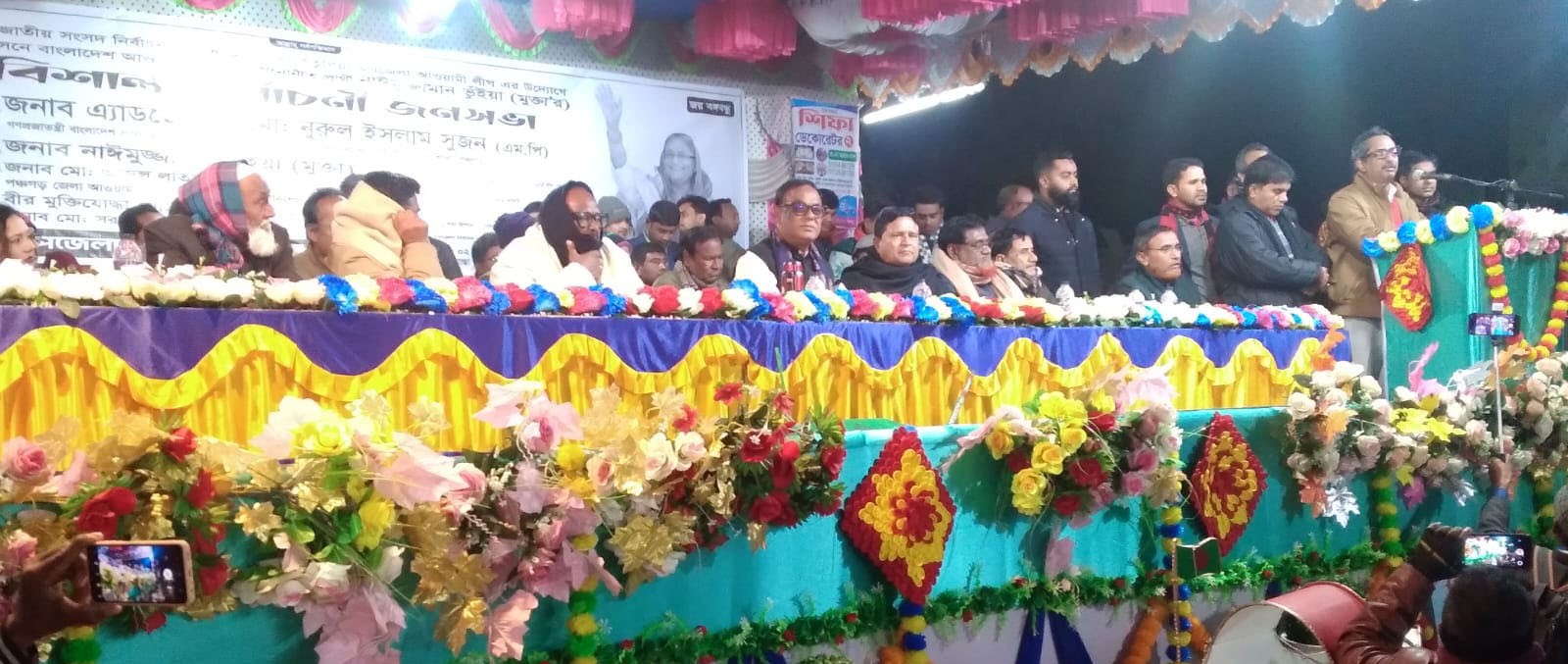 উপজেলা আওয়ামীলীগের সহ-সভাপতি সর্দার আফতাব উদ্দীনের সঞ্চালনায় বিশেষ অতিথির বক্তব্যে নৌকার প্রার্থী নাইমুজ্জামান ভূঁইয়া মুক্তা বলেন, আমি আপনাদের ভোটে নৌকা মার্কা জয়যুক্ত হলে আমার কাজ হবে পঞ্চগড়ে চা চাষীদের দুঃখ দুর্দশা লাঘবে সকল সিন্টিকেট ভেঙ্গে দিয়ে ন্যায্য মূল্যের ব্যবস্থা করব এবং পঞ্চগড়ে বন্ধ হওয়া ভারি শিল্প সুগার মিলস লি. আধুনিকীকরণ যন্ত্রপাতির মাধ্যমে পুঃনরায় চালুর ব্যবস্থা করা, পঞ্চগড় শহরের বিকল্প ব্রিজ ও বাইপাস সড়ক নির্মাণ করা, শিক্ষার্থীদের দীর্ঘদিনের দাবী একটি মেডিকেল কলেজ স্থাপন করা সহ পাথর শ্রমিক ভাইদের ভাগ্যের উন্নয়নে কাজ করা। হামার পঞ্চগড় হামরা গড়িমো আঞ্চলিক ইশতেহারে প্রাধান্য পাবে বেকারত্ব মুক্ত পঞ্চগড় গড়ার লক্ষে বিপুল সংখ্যক যুব সমাজের কাজের সুযোগ সৃষ্টি করার জন্য শিল্পকারখানা স্থাপন করা। তাই জেলার মাটি ও গরীব-দুঃখী মেহনতি মানুষের সেবা করার এবং অসম্পন্ন উন্নয়ন কাজগুলো সম্পন্ন করার জন্য আগামী ৭ই জানুয়ারী স্বতঃস্ফূর্তভাবে নৌকা মার্কায় একটি করে ভোট ভিক্ষা দিয়ে আমাকে জয়যুক্ত করবেন।