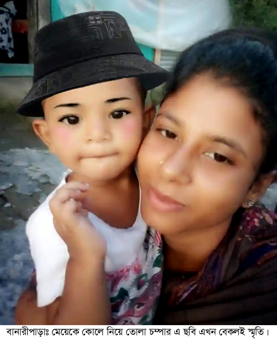 রাহাদ সুমন,বিশেষ প্রতিনিধি॥ বরিশালের বানারীপাড়ায় ব্রাক্ষ্মণকাঠি গ্রামে ভালোবেসে ঘর বেধে চম্পা(২২) নামের এক গৃহবধুকে প্রেমিক স্বামীর যৌতুকের নির্মম বলি হওয়ার অভিযোগ পাওয়া গেছে। ঘটনার পর থেকে তার স্বামী সুমন বেপারী দুই বছরের মেয়ে তানহাকে নিয়ে পলাতক রয়েছে। ১৪ জানুয়ারী রবিবার রাত ১১টার দিকে বানারীপাড়া উপজেলা স্বাস্থ্য কমপ্লেক্স থেকে চম্পার মরদেহ উদ্ধার করে পুলিশ। তার মৃত্যুরহস্য উদঘাটনে ১৫ জানুয়ারী সোমবার সকালে ময়না তদন্তের জন্য মরদেহ বরিশাল শেবাচিম হাসপাতাল মর্গে পাঠানো হয়। ময়না তদন্ত সম্পন্ন হওয়ার পরে ওই দিন বাদ আসর জানাজা শেষে উপজেলার মহিষাপোতা গ্রামে পারিবারিক কবরস্থানে তার মরদেহ দাফন করা হয়। এ ব্যপারে নিহত চম্পার মা রেবা বেগম বানারীপাড়া থানায় লিখিত অভিযোগ দিয়েছেন। চম্পার বাবা-মা ও ভাইসহ স্বজনদের অভিযোগ, জামাতা সুমন বেপারী তার ব্রাক্ষ্মণকাঠি গ্রামে সম্প্রতি ৬ শতক সম্পত্তি ক্রয় করেন। ওই সম্পত্তি ক্রয় করতে গিয়ে সে ঋনগ্রস্থ হয়ে পড়ায় তা পরিশোধের জন্য স্ত্রী চম্পাকে বাবার বাড়ি থেকে টাকা এনে দিতে বলেন। মেয়ের সুখের কথা ভেবে চম্পার দরিদ্র বাবা-মা সমিতি থেকে ঋন নিয়ে জামাতাকে ১৫ হাজার টাকা দেন। এতে সুমন সন্তষ্ট না হয়ে স্ত্রীর কাছে আরও টাকা দাবি করেন। এ নিয়ে তাদের সংসারে কলহ সৃষ্টি হয়। সুমন টাকার দাবিতে গালাগালসহ স্ত্রীকে নানাভাবে মানসিক ও শারিরীক নির্যাতন শুরু করে। ফলে গত ৮/৯দিন পূর্বে চম্পা শিশু কন্যাকে নিয়ে বানারীপাড়া পৌর শহরের এক নম্বর ওয়ার্ডে পিতা কুটিয়াল আনোয়ার মল্লিকের বাড়িতে এসে ওঠেন। ঘটনার দিন ১৪ জানুয়ারী রবিবার সন্ধ্যায় সুমন শ^শুর বাড়ি থেকে স্ত্রীকে নিয়ে যেতে চাইলে দু’জনের মধ্যে কথাকাকাটি হয়। এসময় সুমন স্ত্রী চম্পাকে অকথ্য ভাষায় গালাগাল ও মারধর করতে তেড়ে গেলে শ^শুর-শাশুড়ি তাকে নিবৃত করেন। পরে সুমন তার বাড়ি ফিরে যান। সন্ধ্যা ৭টার দিকে চম্পা তার দুই বছরের শিশু কন্যা তানহাকে নিয়ে উপজেলার সদর ইউনিয়নের ব্রাক্ষ্মণকাঠি গ্রামে স্বামীর বাড়ি ফিরে যান। সেখানে যাওয়ার পরে তাদের মধ্যে পুনরায় ঝগড়াঝাটি হয়। ওই দিন রাত ১০টার দিকে চম্পাকে অচেতন অবস্থায় তার শাশুড়িসহ প্রতিবেশীরা বানারীপাড়া উপজেলা স্বাস্থ্য কমপ্লেক্সে নিয়ে আসেন। চম্পার শ^শুর তৈয়ব আলী বেপারী ও শাশুড়ি আলেয়া বেগমের দাবি ঘরের আড়ার সঙ্গে ওড়না দিয়ে গলায় ফাঁস লাগিয়ে চম্পা আত্মহত্যা করেছে। অপরদিকে চম্পার পরিবারের দাবি তাকে মারধর করে হত্যার পরে ঘরের আড়ার সঙ্গে মরদেহ ঝুলিয়ে রেখে আত্মহত্যা বলে প্রচারনা চালানো হচ্ছে। এদিকে আদরের চম্পাকে হারিয়ে তার পরিবারে বইছে শোকের মাতম। বাবা-মাসহ স্বজনদের আহাজারিতে 