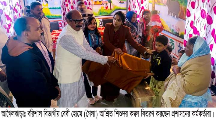 বরিশালের আগৈলঝাড়ায় অবস্থিত সমাজসেবা অধিদপ্তরের আওতায় বরিশাল বিভাগীয় বেবী হোমে (ছোটমনি নিবাস) আশ্রিত শিশুদের শীত নিবারণের জন্য কম্বল বিতরণ করেছে উপজেলা প্রশাসন। ১৬ জানুয়ারি মঙ্গলবার বিকেলে কর্মকর্তাগন গৈলা বেবী হোমে গিয়ে শিশুদের সাথে কিছু সময় কাটিয়ে তাদের খোজ খবর নেন। পরে ১৫জন আশ্রিত শিশুর শীত নিবারণের জন্য কম্বল বিতরণ করেন উপজেলা চেয়ারম্যান বীর মুক্তিযোদ্ধা আব্দুর রইচ সেরনিয়াবাত, উপজেলা নির্বাহী অফিসার ফারিহা তানজিন, সহকারী কমিশনার উম্মে ইমামা বানিন, প্রকল্প বাস্তবায়ন কর্মকর্তা মোঃ মোশারফ হোসেন। এসময় বেবী হোমের দায়িত্বে থাকা উপজেলা সমাজসেবা অফিসার সুশান্ত বালা, গৈল ইউপি চেয়ারম্যান মোঃ শফিকুল হোসেন টিটু তালুকদার উপস্থিত ছিলেন।