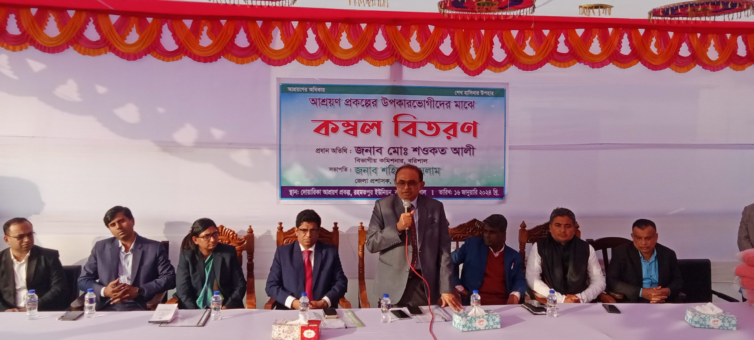 বরিশাল জেলা প্রশাসক মোঃ শহিদুল ইসলামের সভাপতিত্বে শীতবস্ত্র বিতরণ অনুষ্ঠানে প্রধান অতিথি হিসেবে উপস্থিত ছিলেন বরিশাল বিভাগীয় কমিশনার মোঃ শওকত আলী।