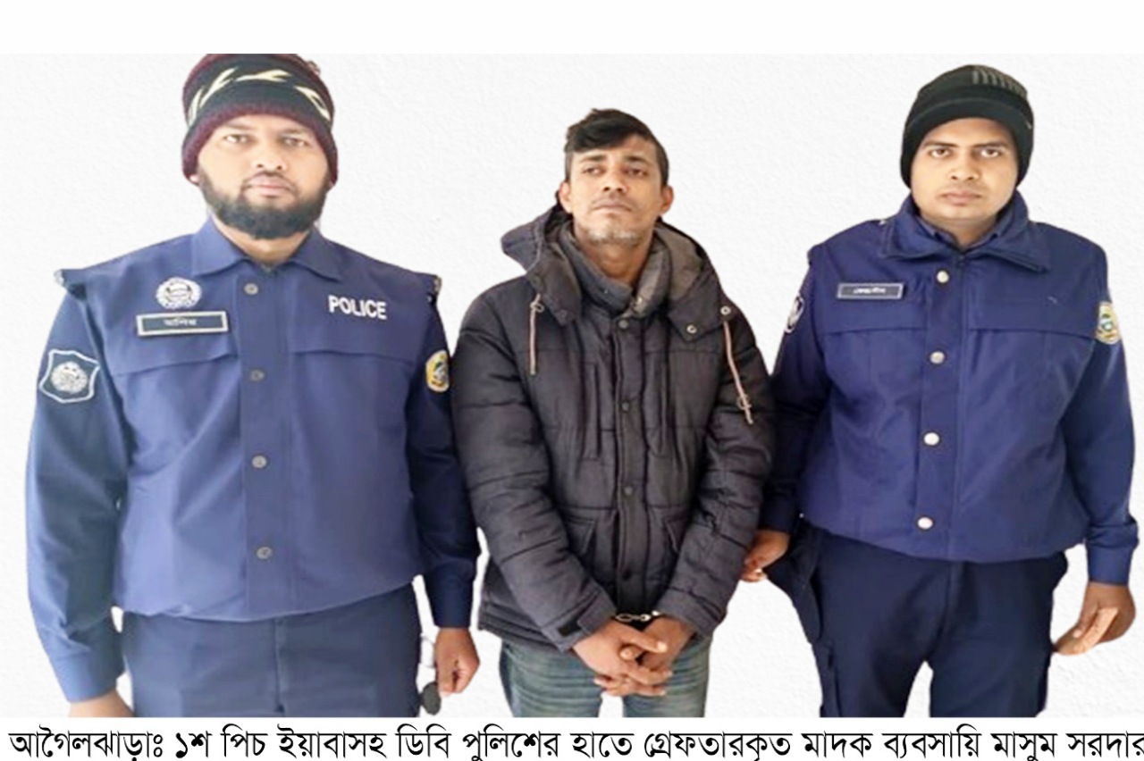 বরিশালের আগৈলঝাড়ায় ১শ পিচ ইয়াবাসহ ডিবি পুলিশের অভিযানে গ্রেতার হয়েছে মাদক ব্যবসায়ি মাসুম সরদার। এ ঘটনায় ডিবি’র মামলায় গ্রেফতারকৃতকে বৃহস্পতিবার সকালে বরিশাল আদালতে প্রেরণ করা হয়েছে। আগৈলঝাড়া থানার পুলিশ পরিদর্শক (তদন্ত) মোঃ জহিরুল ইসলাম আজকের ক্রাইম নিউজ প্রতিনিধি বি এম মনির হোসেনকে বলেন, বরিশাল জেলা গোয়েন্দা (ডিবি) পুলিশের একটি দল বুধবার রাতে দক্ষিণ গৈলা গ্রামে অভিযান চালিয়ে ওই গ্রামের সেকেন্দার আলী সরদারের ছেলে মাদক ব্যবসায়ি মাসুম সরদারকে ১শ পিচ ইয়াবাসহ গ্রেফতার করেছে। এ ঘটনায় বুধবার রাতেই ডিবি’র এসআই কাজী ওবায়দুল কবির বাদী হয়ে মাদক দ্রব্য নিয়ন্ত্রন আইনে মামলা দায়ের করেন।