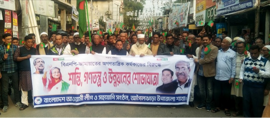 ৩০ জানুয়ারি বিএনপি ডাকা দেশব্যাপি কালো পতাকা মিছিলের প্রতিবাদে মতাসীন আওয়ামী লীগের ডাকা দেশ ব্যাপী কর্মসূচির অংশ হিসেবে বরিশালের আগৈলঝাড়ায় আওয়ামী লীগ ও সহযোগী সংগঠনের আয়োজনে জাতীয় পতাকা হাতে শান্তি, গণতন্ত্র ও উন্নয়ন সমাবেশ অনুষ্ঠিত হয়েছে। তবে বিএনপির কোন মিছিল বা সভা সমাবেশে অনুষ্ঠিতর খবর পাওয়া যায়নি। ৩০জানুয়ারি মঙ্গলবার বিকেলে উপজেলা আওয়ামী লীগ কার্যালয় থেকে দলীয় নেতা কর্মীরা শান্তি, গণতন্ত্র ও উন্নয়ন সমাবেশের বিশাল মিছিলে যোগদান করে শহরের প্রধান প্রধান সড়ক প্রদক্ষিণ করেন। পরে দলীয় কার্যালয়ের সামনে উপজেলা আওয়ামী লীগের সভাপতি সুনীল কুমার বাড়ৈর সভাপতিত্বে শান্তি, গণতন্ত্র ও উন্নয়ন সমাবেশে বক্তব্য রাখেন উপজেলা আওয়ামী লীগের সাধারণ সম্পাদক আবু সালেহ মোঃ লিটন সেরনিয়াবাত।