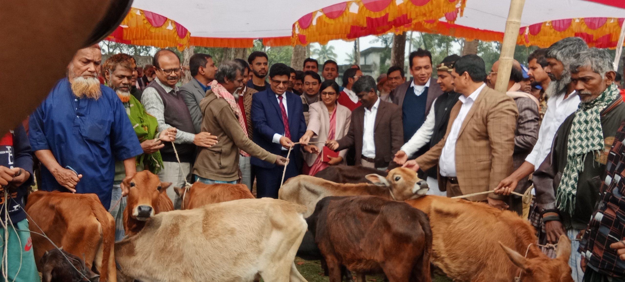 সচেতনামূলক সভা শেষে ৩২ টি ছাগল ও ২০টি বকনা বাছুর সহ মোট ৫২ জন উপকারভোগীদের মাঝে উপকরণ বিতরণ কার্যক্রমের উদ্বোধন করেন বরিশাল জেলা প্রশাসক মোঃ শহিদুল ইসলাম।