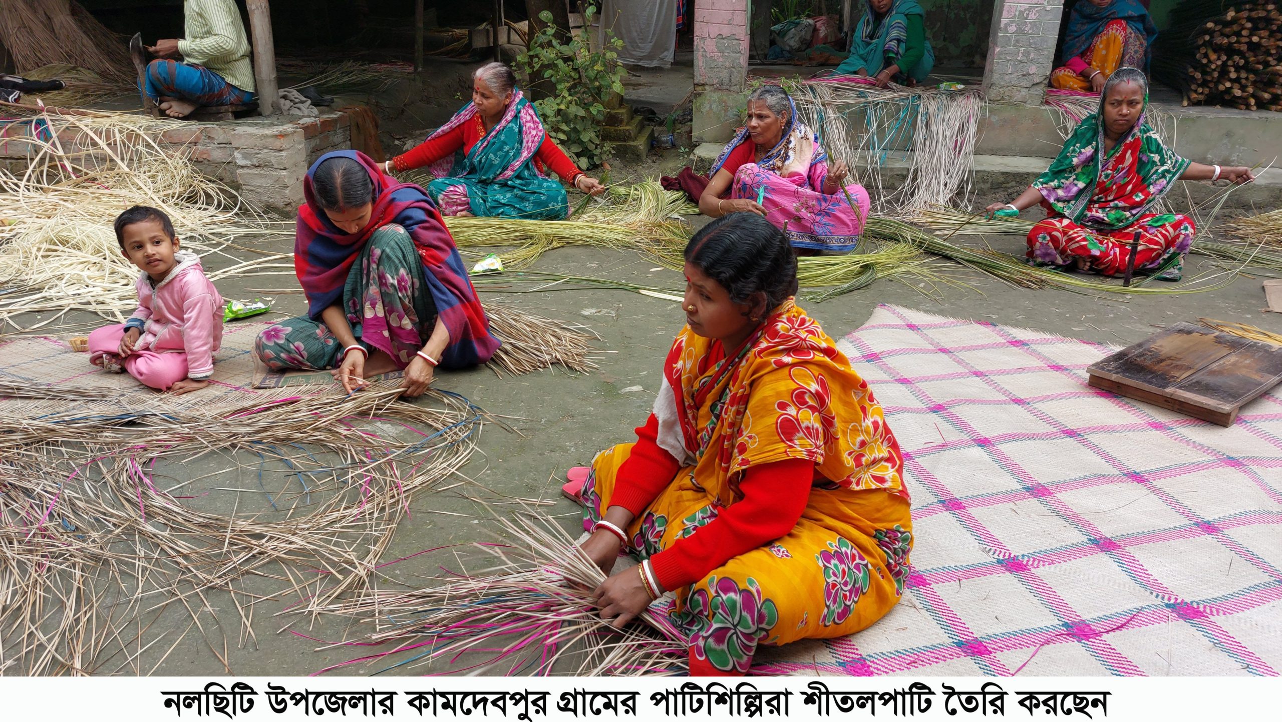 প্রবীন পাটিশিল্পি বিবেকানন্দ জানান,আনুমানিক পাঁচশত বছর আগ থেকে আমাদের এখানের লোকজন এই পেশার সাথে জরিত তবে সময়টা এর থেকেও বেশি হতে পারে। বর্তমানে ২শত পরিবার ও তাদের সদস্যরা এই পেশার সাথে জরিত আছেন। যার মধ্যে অর্ধেকের বেশি নারী পাটিশিল্পি রয়েছেন। আগে আরও বেশি ছিল কিন্তু নানান সমস্যার কারনে অনেক পরিবার এই পেশা ছেড়ে দিয়েছে। পরিবারের পুরুষ সদস্যরা শীতলপাটি তৈরি উপাদান পাইত্রা গাছ জমি থেকে কেটে সেটা প্রসেস করেন। তারপর মহিলা সদস্যরা তা দিয়ে শীতলপাটি বুনন করেন।