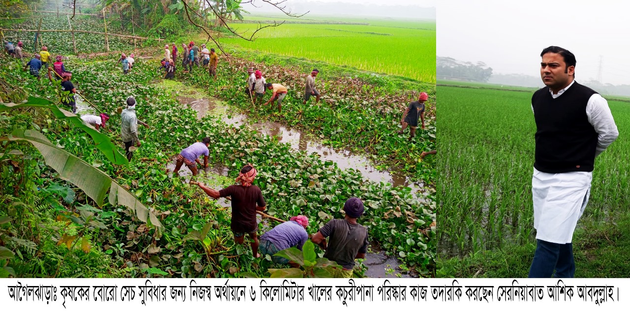 হাজার হাজার কৃষকের জন্য ইরি-বোরো ব্লকে পানি প্রবাহ নিশ্চিত করতে আগৈলঝাড়ার পশ্চিম সীমান্ত ত্রিমুখি এলাকার সন্ধ্যা নদী থেকে বাকাল ইউনিয়নের কোদালধোয়া বাজার হয়ে বাকালহাট পর্যন্ত ৬ কিলোমিটার খালের কচুরীপানা পরিস্কার কাজ শুরু করে প্রসংশায় ভাসছেন ’১৫ আগষ্ট শহীদ হওয়া আব্দুর রব সেরনিয়াবাতের নাতি আওয়ামী লীগ নেতা সেরনিয়াবাত আশিক আবদুল্লাহ।কৃষক লীগের প্রতিষ্ঠাতা, কৃষক কুলের নয়নমনি, দাদা শহীদ আব্দুর রব সেরনিয়াতের মতো কৃষকদের স্বার্থে দাদা আব্দুর রব সেরনিয়াবাতের পদাঙ্ক অনুসরণ করে মন্ত্রী পদর্যাদায় পার্বত্য শান্তি চুক্তি বাস্তবায়ন ও পরীবিক্ষণ কমিটির আহ্বায়ক,স্থানীয় এমপি আলহাজ্ব আবুল হাসানাত আবদুল্লাহ’র পুত্র, বরিশাল জেলা আওয়ামী লীগের নির্বাহী সদস্য ৬ ফেব্রুয়ারী