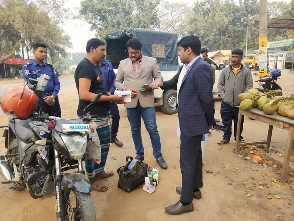মাহমুদ হাসান রনি, চুয়াডাঙ্গা প্রতিনিধিঃ চুয়াডাঙ্গার দামুড়হুদা উপজেলার হাউলী ইউনিয়নের লোকনাথপুর গ্রামের মোঃ মহিউদ্দিনের ছেলে পল্লী চিকিৎসক দাবীদার পল্লীপ্রাণি চিকিৎসক শামীম হোসেনকে মোবাইল কোর্টে ২০ হাজার টাকা জরিমানা করা হয়েছে।মঙ্গলবার দুপুরে মোবাইলের কোর্টের বিচারক দামুড়হুদা উপজেলা সহকারী কমিশনার( ভূমি)সজল কুমার বাংলাদেশ ভেটেনারী কাউন্সিল আইস ২০১৯ এর ৩৮ ধারায় তাকে ২০ হাজার টাকা জরিমানা করেন।এসময় মোবাইল কোর্ট পরিচালনায় সহযোগীতা করেন দামুড়হুদা উপজেলা প্রাণিসম্পদ কর্মকর্তা কৃষিবিদ নীলিমা আক্তার হ্যাপী, উপজেলা ভেটেনারী সার্জন ডা:নাজমুল হাসান শাওন,কার্পাসডাঙ্গা লাইভস্টক সার্ভিস প্রোভাইটার বিল্লাল হোসেন,রফিকুল ইসলাম।