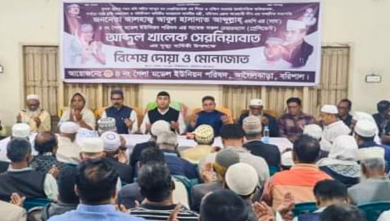 বরিশালের আগৈলঝাড়া উপজেলার গৈলা মডেল ইউনিয়ন পরিষদের উদ্যোগে গৈলা মডেল ইউনিয়ন পরিষদের সাবেক প্রেসিডেন্ট আঃ খালেক সেরনিয়াবাতের ৫১তম মৃত্যু বার্ষিকী উপলক্ষে স্মরণসভা ও দোয়া-মিলাদ অনুষ্ঠিত হয়েছে। মরহুম খালেক সেরনিয়াবাত ছিলেন স্বাধীন দেশের প্রথম কৃষি, সেচ ও পানি সম্পদ মন্ত্রী, বাংলাদেশ কৃষক লীগের প্রতিষ্ঠাতা, ’৭৫এর ১৫ আগষ্ট জাতির পিতার পরিবারের সাথে শহীদ হওয়া আব্দুর রব সেরনিয়াবাতের বাবা এবং মন্ত্রী মর্যাদায় পার্বত্য শান্তি চুক্তি বাস্তবায়ন ও পরীবিক্ষণ কমিটির আহ্বায়ক ও বরিশাল জেলা আওয়ামী লীগ সভাপতি আলহাজ্ব আবুল হাসানাত আবদুল্লাহ -এমপি’র দাদা। বৃহস্পতিবার বিকেলে গৈলা মডেল ইউনিয়ন পরিষদ হল রুমে চেয়ারম্যান শফিকুল হোসেন টিটু তালুকদারের সভাপতিত্বে স্মরণসভা ও দোয়া মিলাদে প্রধান অতিথি ছিলেন বরিশাল জেলা আওয়ামী লীগের নির্বাহী সদস্য, শহীদ আব্দুর সেরনিয়াবাতের নাতি সেরনিয়াবাত আশিক আবদুল্লাহ। স্মরণ সভায় অন্যান্যদের মধ্যে আরও উপস্থিত উপস্থিত ছিলেন জেলা আওয়ামী লীগ নেতা ও আগৈলঝাড়া উপজেলা চেয়ারম্যান বীর মুক্তিযোদ্ধা আব্দুর রইচ সেরনিয়াবাত, উপজেলা আওয়ামী লীগের সাধারণ সম্পাদক আবু সালেহ মোঃ লিটন সেরনিয়াবাত, সহসভাপতি আব্দুস সাত্তার মোল্লা, উপজেলা ভাইস চেয়ারম্যান মোঃ রফিকুল ইসলাম তালুকদার, সাবেক ভাইস চেয়ারম্যান মোঃ জসিম উদ্দিন সরদার, বাকাল ইউপি চেয়ারম্যান বিপুল দাস, বাকাল ইউনিয়ন আওয়ামী লীগ সভাপতি মোঃ সাইদুল ইসলাম পাইক, উপজেলা যুবলীগ সভাপতি মোঃ কামরুজ্জামান সেরনিয়াবাত আজাদ, যুগ্ম সাধারণ সম্পাদক সেরনিয়াবাত ফয়জুল, ছাত্র লীগ সভাপতি মোঃ মিন্টু সেরনিয়াবাত, সাধারণ সম্পাদক মোঃ জাকির হোসেন পাইকসহ উপজেলা আওয়ামী লীগ ও সহযোগী সংগঠনের নেতৃবৃন্দরা।