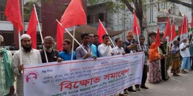 বরিশাল নগরী প্রাণকেন্দ্র অশ্বিনী কুমার হলের সামনে বাংলাদেশ ট্রেড ইউনিয়ন কেন্দ্র, জাতীয় নারী শ্রমিক ট্রেড ইউনিয়ন কেন্দ্র, বরিশাল জেলা ইমারত নির্মাণ শ্রমিক ইউনিয়ন, মহানগর দোকান কর্মচারী ইউনিয়ন, নৌযান শ্রমিক ফেডারেশন, দর্জি শ্রমিক সংগ্রাম কমিটি, বস্তিবাসী ইউনিয়ন, প্রেস ইউনিয়ন ও রিকশা-ভ্যান-ঠেলাগাড়ি শ্রমিক ইউনিয়ন শ্রমিক সমাবেশ ও মানববন্ধন অনুষ্ঠিত হয় আজ শুক্রবার ১৬ ফেব্রুয়ারি। সাম্রাজ্যবাদ, সন্ত্রাস-সাম্প্রদায়িকতা, লুটেরা-দুর্নীতিবাজদের প্রতিহত করা, মুক্তিযুদ্ধের চেতনায় শ্রমনীতি বাস্তবায়ন করার দাবিসহ ১১ দফা দাবিতে বরিশালে শ্রমিক সমাবেশ ও বিক্ষোভ মিছিল করা হয়েছে।শ্রমিক নেতা স্বপন দত্তের সভাপতিত্বে সমাবেশে বক্তব্য দেন- শ্রমিক নেতা অ্যাডভোকেট এ কে আজাদ, শ্রমিক নেতা আবু সাঈদ, শেখ আবুল হোসেন, মো. আলম খান, জে কে মুকুল, তুষার সেন, সেকান্দার সিকদার, বিধান কর্মকার, রনি তালুকদার, অপূর্ব গৌতম প্রমুখ।সমাবেশে বক্তারা বলেন, সাম্রাজ্যবাদ, সন্ত্রাস-সাম্প্রদায়িকতা, লুটেরা-দুর্নীতিবাজদের প্রতিহত করতে হবে, মুক্তিযুদ্ধের চেতনায় শ্রমনীতি বাস্তবায়ন করতে হবে, চাকরির নিরাপত্তা, দোকান কর্মচারীসহ বেসরকারি শিল্প প্রতিষ্ঠানের শ্রমিক-কর্মচারীদের নিয়োগপত্র, ন্যূনতম মজুরি ২০ হাজার টাকা, সরকারি গেজেট অনুযায়ী দর্জি শ্রমিকদের মজুরি নির্ধারণ, ভর্তুকি মূল্যে রেশনিং ব্যবস্থা চালু, বস্তিবাসীদের স্ব স্ব স্থানে বন্দোবস্ত দেওয়া, শ্রম আইন সংশোধন পূর্বক ইমারতসহ অপ্রাতিষ্ঠানিক শ্রমিকদের সরকারি তালিকাভুক্ত ও শ্রম আইনে অন্তর্ভুক্ত করা, ষাটোর্ধ্ব শ্রমিকদের পেনশন দেওয়া এবং বাড়িভাড়া, শিক্ষা-চিকিৎসা ব্যয় কমানো, দ্রব্যমূল্যের ঊর্ধ্বগতি রোধ, লঞ্চ ভাড়া, বাস ভাড়া কমানো, বরিশাল শের-ই-বাংলা মেডিকেল কলেজসহ চিকিৎসায় অব্যবস্থাপনা-নৈরাজ্য অবিলম্বে দূর করা, মজুরি কমিশন গঠন করে মানবিক জীবনযাপন উপযোগী মজুরি নির্ধারণ করতে হবে, সব সেক্টরে মজুরি নির্ধারণের জন্য কমিশনের অধীনে প্রয়োজনীয় সংখ্যক মজুরিবোর্ড গঠনসহ ১১ দফা দাবি বাস্তবায়নের জন্য সরকারের প্রতি আহ্বান জানান তারা।