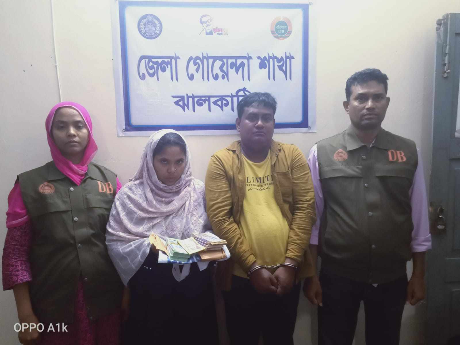 আটকৃতরা হলো পিরোজপুর জেলার ভান্ডারিয়া থানার গৌরীপুর এলাকার আল আমিন হাওলাদারের স্ত্রী নুপুর বেগম ও ঝালকাঠি সদরের পোনাবালিয়া ইউনিয়নের দেউরী গ্রামের ওয়াজেদ আলী খলিফার ছেলে জসিম খলিফা।