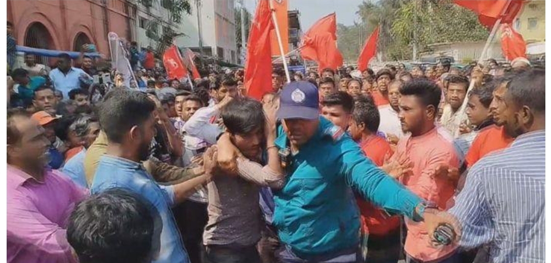হামলায় আহত সার্জেন্ট শহিদুল ইসলাম বলেন, বাসদ জেলা শাখার সদস্য সচিব ডা. মনিষা চক্রবর্তীর নেতৃত্বে বিক্ষোভ মিছিল চলাকালে একটি মোটরসাইকেল ওই স্থান দিয়ে যাচ্ছিল। যাওয়ার সময় আকস্মিক শ্রমিকরা তার ওপর হামলা চালায় ও মোটরসাইকেল ভাঙচুর করা হয়। মোটরসাইকেল আরোহীকে রক্ষায় এগিয়ে গেলে বিক্ষোভকারীরা আমার ওপরও চড়াও হয়। তারা আমাকেও বেদম মারধর করেছে।