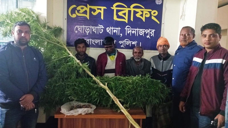 দিনাজপুরের ঘোড়াঘাটে নিজ বাড়িতে গাঁজা চাষ করে বিক্রি ও সেবন করার ্অভিযোগে গাঁজা চাষী বীরবল (৪০) সহ ৩ গাঁজাসেবীকে গ্রেফতার করেছে ঘোড়াঘাট থানা পুলিশ।