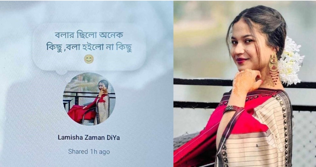 আজকের ক্রাইম ডেক্স: ‘বলার ছিল অনেক কিছু, বলা হলো না কিছু’ ফেসবুকে এ স্ট্যাটাস পোস্ট করে নিজ ঘরের ফ্যানের সঙ্গে ফাঁস দিয়ে লামিসা জামান দিয়া নামের এক এসএসসি পরীক্ষার্থী আত্মহত্যা করেছে। শুক্রবার বিকালে শরীয়তপুরের ডামুড্যা পৌরসভার ৯নং ওয়ার্ডের দক্ষিণ ডামুড্যা এলাকায় এ ঘটনা ঘটে।