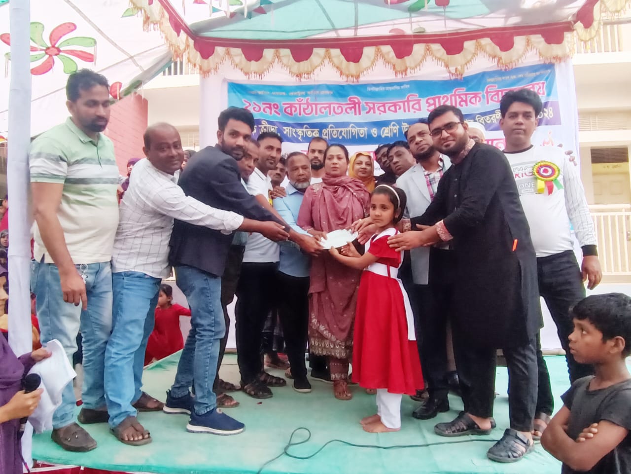 বরিশালের গৌরনদী উপজেলার ২১নং কাঁঠালতলী সরকারি প্রাথমিক বিদ্যালয় বার্ষিক ক্রীড়া সাংস্কৃতিক প্রতিযোগিতা ও শ্রেনি উত্তরণ মেধা পুরস্কার বিতরণ ২০২৪ খ্রি: অনুষ্ঠান সুষ্ঠ ও সুন্দর পরিবেশে অনুষ্ঠিত হয়েছে।গত ২৭ও ২৮ ফেব্রুয়ারি দিনব্যাপী ২১নং কাঁঠালতলী সরকারি প্রাথমিক বিদ্যালয় মাঠে ছাত্র-ছাত্রীদের নিয়ে এ খেলা অনুষ্ঠিত হয়।২৭ ফেব্রুয়ারী সকাল ১০টায় জাতীয় পতাকা উত্তোলনের মধ্য দিয়ে অনুষ্ঠান উদ্বোধন করেন ২১নং কাঁঠালতলী সরকারি প্রাথমিক বিদ্যালয়ের সম্মানিত প্রধান শিক্ষক মোঃ শাহেআলম শিকদার। দুইদিনব্যাপী এ খেলার বিভিন্ন ইভেন্টের মধ্যে ছিল ১০০ মিটার দৌড়, চকলেট দৌড়, ক্রিকেট বল নিক্ষেপ, ভারসাম্য দৌড়, অংক দৌড়, মারবেল কুড়ানো এবং সাংস্কৃতিক অনুষ্ঠানের মধ্যে ছিল কবিতা আবৃত্তি, একক অভিনয় , দেশাত্ববোধক গান, একক নিত্য,দলিয় নিত্য, যেমন খুশি তেমন সাজ ইত্যাদি। সম্মানিত অতিথিদের মধ্যে উপস্থিত ছিলেন উপজেলা আওয়ামী নেতা আব্দুস সালাম সেরনিয়াবাত সাবেক সভাপতি কাঁঠালতলী সরকারি প্রাথমিক বিদ্যালয় , উপজেলা আওয়ামী নেতা মোঃ মোশাররফ ফকির সাবেক সভাপতি কাঁঠালতলী সরকারি প্রাথমিক বিদ্যালয়, অনন্যদের মধ্যে উপস্থিত ছিলেন আওয়ামী নেতা, কাজী নাসির উদ্দীন, আলাম মৃধা, সেন্টু মৃধা, ছাত্রলীগ নেতা শিবলী সাদিক, মোঃ আরিফুল ইসলাম মার্কেটিং অফিসার আলহাজ্ব নুর মোহাম্মদ হাসপাতাল, উপজেলার বিভিন্ন প্রাথমিক ও মাধ্যমিক বিদ্যালয় থেকে আমন্ত্রিত সম্মানিত শিক্ষকবৃন্দদের মধ্যে উপস্থিত মোঃ হানিফ সরদার সিনিয়র শিক্ষক চাঁদশী ইশ্বর চন্দ্র মাধ্যমিক বিদ্যালয়,মোঃ শফিকুল ইসলাম (নান্নু) সিনিয়র শিক্ষক কটকস্থল সরকারি প্রাথমিক বিদ্যালয়, অনুষ্ঠান পরিচালনায় ছিলেন ২১ নং কাঁঠালতলী সরকারি প্রাথমিক বিদ্যালয়ের শিক্ষিকা নাজমা খানম, তানিয়া আক্তার, ফারজানা আক্তার রিনা শিকদার সুফিয়া আক্তার ও অফিস সহকারী মোঃ সুজন ফকির সহ এলাকার যুবসমাজ অনুষ্ঠানে উপস্থাপনায় ছিলেন মোঃ গোলাম রাব্বি হাওলাদার, ক্রীড়া ও সাংস্কৃতিক অনুষ্ঠানের সভাপতিত্ব করেন ২১নং সরকারি প্রাথমিক বিদ্যালয়ের সভাপতি মোঃ রিয়াদ সেরনিয়াবাত। ২৮ ফেব্রুয়ারী বিকেলে বিভিন্ন ইভেন্টে বিজয়ীদের মধ্যে সম্মানিত অতিথিবৃন্দ উপস্থিত থেকে পুরস্কার বিতরণ করেন।