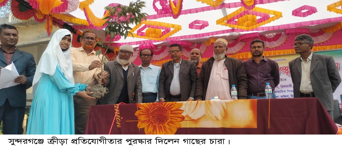 গাইবান্ধার সুন্দরগঞ্জ উপজেলার নাজিমাবাদ বিএল উচ্চ বিদ্যালয়ের বার্ষিক ক্রীড়া প্রতিযোগিতার পুরস্কার হিসেবে গাছের চারা বিতরণ করে চমৎকার দৃষ্টান্ত স্থাপন করেছেন। সোমবার বিদ্যালয়ের আয়োজনে বিদ্যালয় মাঠে বার্ষিক ক্রীড়া প্রতিযোগিতার পুরস্কার বিতরণ ও সাংস্কৃতিক অনুষ্ঠান উপলক্ষে এক আলোচনা সভা অনুষ্ঠিত হয়।