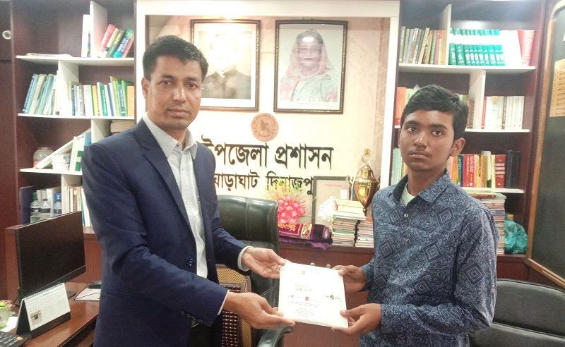 ক্যাডেট কলেজে ভর্তি পরীক্ষায় উত্তীর্ণ হওয়ায় মেধাবী আরাফাতকে নিজ দপ্তরে ডেকে নিয়ে শুভেচ্ছা জানিয়ে শুভেচ্ছা উপহার দিয়েছেন ঘোড়াঘাট উপজেলা নির্বাহী কর্মকর্তা (ইউএনও) রফিকুল ইসলাম।