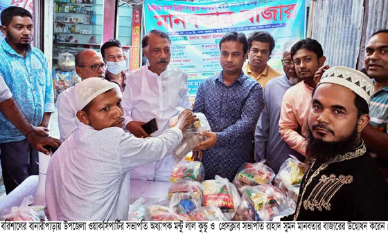 বরিশালের বানারীপাড়ায় পবিত্র মাহে রমজান উপলক্ষে নি¤œ আয়ের মানুষের সুবিধার্থে উজ্জীবন মানব কল্যাণ সংস্থার উদ্যোগে স্বল্প (ভর্তুকি) মূল্যে নিত্য প্রয়োজনীয় সামগ্রী বিক্রির ‘মানবতার বাজারের’ উদ্বোধন করা হয়েছে। মঙ্গলবার (১৯ মার্চ) বেলা ১১ টায় বানারীপাড়া বন্দর বাজারের সদর রোডে মানবতার এ বাজারের উদ্বোধনী অনুষ্ঠানে বানারীপাড়া উজ্জীবন মানব কল্যাণ সংস্থার প্রতিষ্ঠাতা ও সভাপতি রাজিব চোকদারের সভাপতিত্বে বিশেষ অতিথির বক্তৃতা করেন উপজেলা ওয়ার্কার্স পার্টির সভাপতি অধ্যাপক মন্টু লাল কুন্ডু,বানারীপাড়া প্রেসক্লাব সভাপতি রাহাদ সুমন,নতুনমুখ সাহিত্য সংস্কৃতি পরিষদের সাধারণ সম্পাদক শাহজাহান মিয়া প্রমুখ। সাংবাদিক সাব্বির হোসেনের সঞ্চালনায় এসময় অন্যান্যের মধ্যে উপস্থিত ছিলেন বীর মুক্তিযোদ্ধা আ. কাদের খান,উজ্জীবন মানব কল্যাণ সংস্থার সহ-সভাপতি ফিরোজ সরদার,সাধারণ সম্পাদক সুমন সরদার,প্রেসক্লাবের সহ-সভাপতি স্বপন মাঝি,মানুষ মানুষের জন্য সংগঠনের প্রতিষ্ঠাতা সাংবাদিক রুবেল বেপারী প্রমুখ। এদিকে দ্রব্যমূল্যের এ উর্ধ্বগতির সময়ে নাভিশ^াস ওঠা নি¤œ আয়ের মানুষের কথা ভেবে এ মানবতার বাজার পরিচালনার অনুকরণীয় উদ্যোগ সর্বমহলে প্রশংসিত হয়েছে। ###