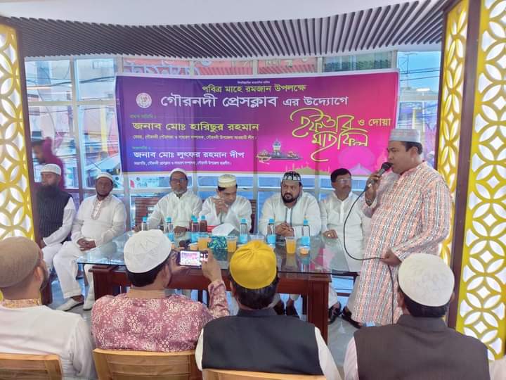 বরিশাল জেলার গৌরনদী প্রেসক্লাবের উদ্যোগে ২১ মার্চ বৃহস্পতিবার গৌরনদী বাস স্যান্ড চড়ুই ভাতী চাইনিজ রেস্তোরাঁয় গৌরনদী প্রেসক্লাবের সভাপতি মোঃ লুতফুর রহমান দিপের সভাপতিত্বে ইফতার ও দোয়া মোনাজাতের আয়োজন করা হয়েছে। ইফতার ও দোয়া মোনাজাতে উপস্থিত ছিলেন গৌরনদী উপজেলা আওয়ামী লীগ সাধারণ সম্পাদক ও পৌর মেয়র মোঃ হারিছুর রহমান হারিছ, গৌরনদী উপজেলা নির্বাহী কর্মকর্তা মোঃ আবু আব্দুল্লাহ খান, গৌরনদী মডেল থানার অফিসার ইনচার্জ মোঃ আনোয়ার হোসেন, গৌরনদী উপজেলা আওয়ামী লীগ সহ-সভাপতি আবু সাঈদ নান্টু, গৌরনদী উপজেলা ভাইস চেয়ারম্যান মোঃ ফরহাদ হোসেন মুন্সী, থানার পুলিশ পরিদর্শক তদন্ত মোঃ মাজহারুল ইসলাম, গৌরনদী উপজেলা ছাত্র লীগ সভাপতি সহ আওয়ামী লীগ যুবলীগ ছাত্র লীগের নেতা কর্মি গন, গৌরনদী প্রেসক্লাবের সাধারণ সম্পাদক উত্তম কুমারসহ প্রেসক্লাব ও উপজেলা রিপোর্টাস ইউনিটির সাংবাদিক গন, রিপোর্টাস ইউনিটির সভাপতি কাজী আল আমীন সহ রিপোর্টাস ইউনিটির সাংবাদিক গন, উপজেলা প্রেসক্লাবের সভাপতি মোহাম্মদ আলী বাবু, সাধারণ সম্পাদক মোল্লা ফারুক হাসানসহ উপজেলা প্রেসক্লাবের সাংবাদিক গন, আগৈলঝাড়া প্রেসক্লাবের সাবেক সভাপতি ও দৈনিক সমকাল পত্রিকার আগৈলঝাড়া প্রতিনিধি কে এম আজাদ রহমান, বরিশাল বিভাগীয় সাংবাদিক ঐক্য পরিষদের সহ-সভাপতি ও দৈনিক বাংলাদেশের আলো দৈনিক হিরন্ময় পত্রিকার আগৈলঝাড়া প্রতিনিধি বি এম মনির হোসেন, দৈনিক আজকের খবর পত্রিকার সম্পাদক মোঃ রাজিব ইসলাম তারীম, দৈনিক হিরন্ময় পত্রিকার প্রতিনিধি নাসির উদ্দীনসহ অনেকে।