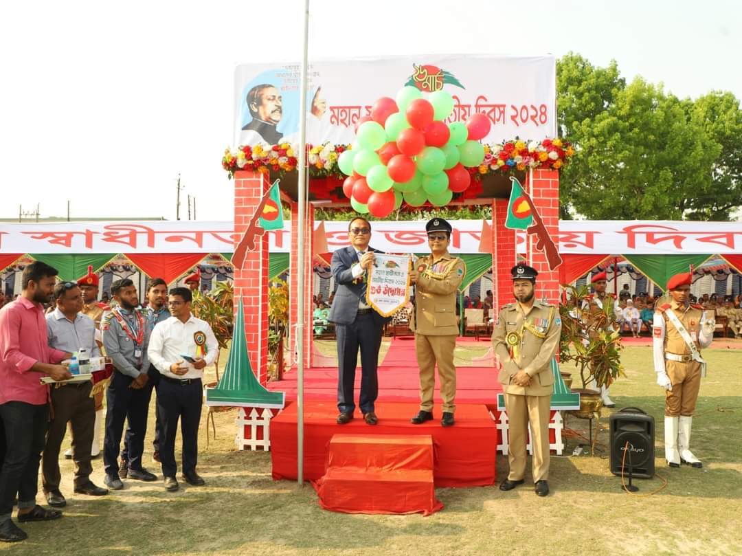 প্যারেডে পুলিশ লাইন্সের আরআই অধিনায়ক আমিনুল ইসলামের নেতৃত্বে বাংলাদেশ পুলিশ, আনসার-ভিডিপি, ফায়ার সার্ভিস ও সিভিল ডিফেন্স, কারারক্ষী, বিএনসিসি, রোভার স্কাউট কুচকাওয়াজ প্রদর্শন করেন। কুচকাওয়াজ শেষে বিভিন্ন স্কুল-কলেজের শিক্ষার্থীদের অংশগ্রহণে মনোজ্ঞ ডিসপ্লে অনুষ্ঠিত হয়। অনুষ্ঠান শেষে অতিথিবৃন্দ বিজয়ীদের মধ্যে পুরস্কার প্রদান করেন।