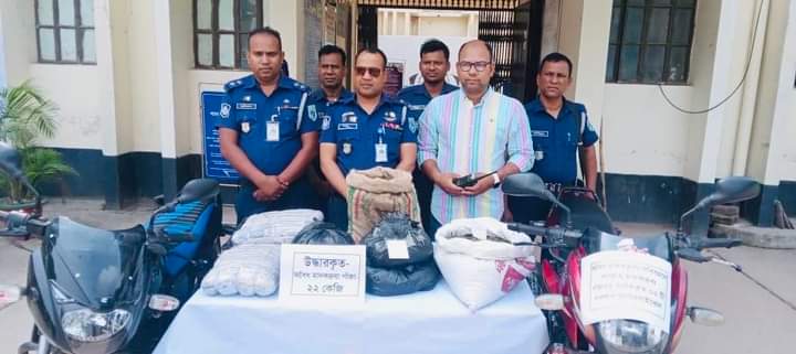 পরে পুলিশ মোটরসাইকেল দুটি উদ্ধার করে। পরে মোটরসাইকেল দুটির বিভিন্ন স্থানে তল্লাসি করে ২২কেজি গাঁজা উদ্ধার করে। গাঁজা ও লাল, কালো রংগের পালসার মোটরসাইকেল ২টি জব্দ করে হেফাজতে নেন।