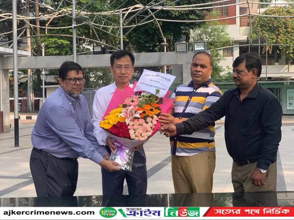 জনাব সুদত্ত চাকমা উপজাতীয় শরণার্থী বিষয়ক টাস্কফোর্সের চেয়ারম্যান (সিনিয়র সচিব পদমর্যাদা) নিযুক্ত লাভ করায় আজ রাজধানীর ধানমন্ডি ৩২ নম্বরে জাতির পিতা বঙ্গবন্ধু শেখ মুজিবুর রহমান-এর স্মৃতি সমাধিতে যথাযোগ্য মর্যাদায় শ্রদ্ধা নিবেদন করেন। তিনি বঙ্গবন্ধু শেখ মুজিবুর রহমান-এর স্মৃতিস্তম্ভে পুষ্পস্তবক অর্পণ করেন এবং ৩২ নম্বর বাসভবনে রক্ষিত পরিদর্শন বইয়ে তাঁর মন্তব্য লিপিবদ্ধ করেন। এসময় বঙ্গবন্ধু স্মৃতি সৌধ ও যাদুঘর-এর প্রশাসনিক কর্মকর্তা ইয়াসমীন আক্তার, বাংলাদেশ বৌদ্ধ ধর্মীয় কলাণ ট্রাস্টের ভাইস চেয়ারম্যান সুপ্ত বড়ুয়া এবং পার্বত্য চট্টগ্রাম বিষয়ক মন্ত্রণালয়ের কর্মকর্তা-কর্মচারীগণ উপস্থিত ছিলেন। আগামিকাল ০২ তারিখ তিনি গোপালগঞ্জ জেলার টুঙ্গিপাড়ায় জাতির পিতা বঙ্গবন্ধুর সমাধি সৌধে যথাযোগ্য মর্যাদায় সম্মান প্রদর্শন করার উদ্যোগ নিয়েছেন।
