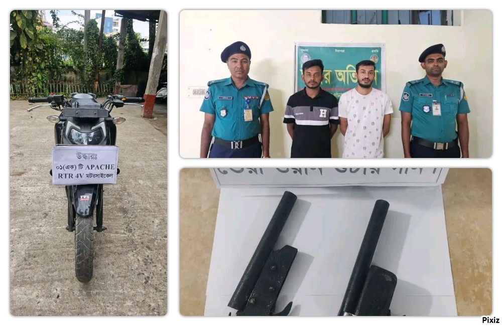 কেএমপি'র সোনাডাঙ্গা মডেল থানা পুলিশ কর্তৃক ০২ (দুই) টি দেশীয় তৈরী ওয়ান শুটার গান ও ০১ (এক) টি মোটরসাইকেলসহ খুলনার শীর্ষ সন্ত্রাসী নূর আজিম গ্রুপের সেকেন্ড ইন কমান্ডসহ ০২ (দুই) জন সন্ত্রাসী গ্রেফতারঃ