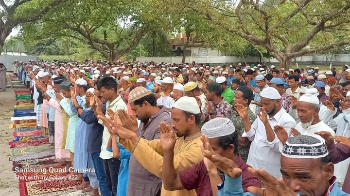 সুজন মহিনুল, বিশেষ প্রতিনিধি।।কয়েক দিনের টানা তাপদাহ থেকে পরিত্রাণ ও বৃষ্টির জন্য আল্লাহর রহমত কামনা করে নীলফামারীর ডিমলায় ইসতিসকার নামাজ আদায় করা হয়েছে।শনিবার (২৭ এপ্রিল) সকালে উপজেলার পশ্চিম ছাতনাই কেন্দ্রীয় ঈদগাঁহ মাঠের খোলা আকাশের নিচে ইসতিসকার নামাজ আদায় করা হয়। নামাজ শেষে আল্লাহর কাছে বৃষ্টির জন্য প্রার্থনা করা হয়।স্থানীয় সুত্রে জানা যায়, সকালে নানা বয়সী বিভিন্ন পেশার প্রায় হাজার মানুষ নামাজের জন্য মাঠে হাজির হন। নামাজের ইমাম প্রথমে মুসল্লিদের উদ্যেশ্যে নিয়মকানুন বলেন। এরপর দুই রাকাত নামাজ আদায় করেন। নামাজ শেষে দুই হাত তুলে প্রচণ্ড গরম,তীব্র তাপপ্রবাহ ও খরা থেকে রক্ষা পেতে বৃষ্টি চেয়ে আল্লাহর নিকট মোনাজাত করেন তারা।নামাজে ইমামতি করেন, পশ্চিম ছাতনাই কেন্দ্রীয় ঈদগাঁহ মাঠের হাফেজ মাওলানা ছাইফুল ইসলাম। তিনি বলেন, কোরআন-হাদিসের আলোকে যতটুকু জানা গেছে, তা হলো মানুষের সৃষ্ট পাপের কারণেই মহান আল্লাহ এমন অনাবৃষ্টি ও খরা দেন। সে জন্য তারা মহান সৃষ্টিকর্তার কাছে পাপের জন্য তওবা করে এবং ক্ষমা চেয়ে দুই রাকাত ইসতিসকার নামাজ আদায় করে বৃষ্টির জন্য প্রার্থনা করেছেন।