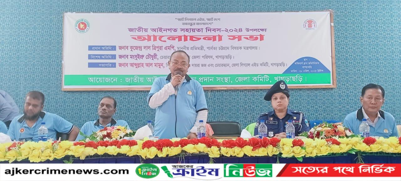 আজ খাগড়াছড়ি অফিসার্স ক্লাব অডিটোরিয়ামে জাতীয় আইনগত সহায়তা সংস্থা, খাগড়াছড়ি জেলা কমিটি আয়োজিত ‘জাতীয় আইনগত সহায়তা দিবস-২০২৪’ উপলক্ষ্যে আলোচনা সভায় প্রধান অতিথির বক্তব্যে পার্বত্য প্রতিমন্ত্রী কুজেন্দ্র লাল ত্রিপুরা এমপি এ কথা বলেন।