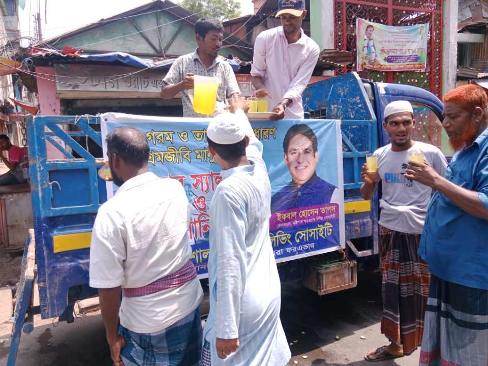 তিব্র গরম ও তাপদাহে সাধারণ শ্রমজীবি মানুষের মাঝে ফরএভার লিভিং সোসাইটি চেয়ারম্যান ইঞ্জিনিয়ার ইকবাল হোসেন তাপস এর পক্ষ থেকে