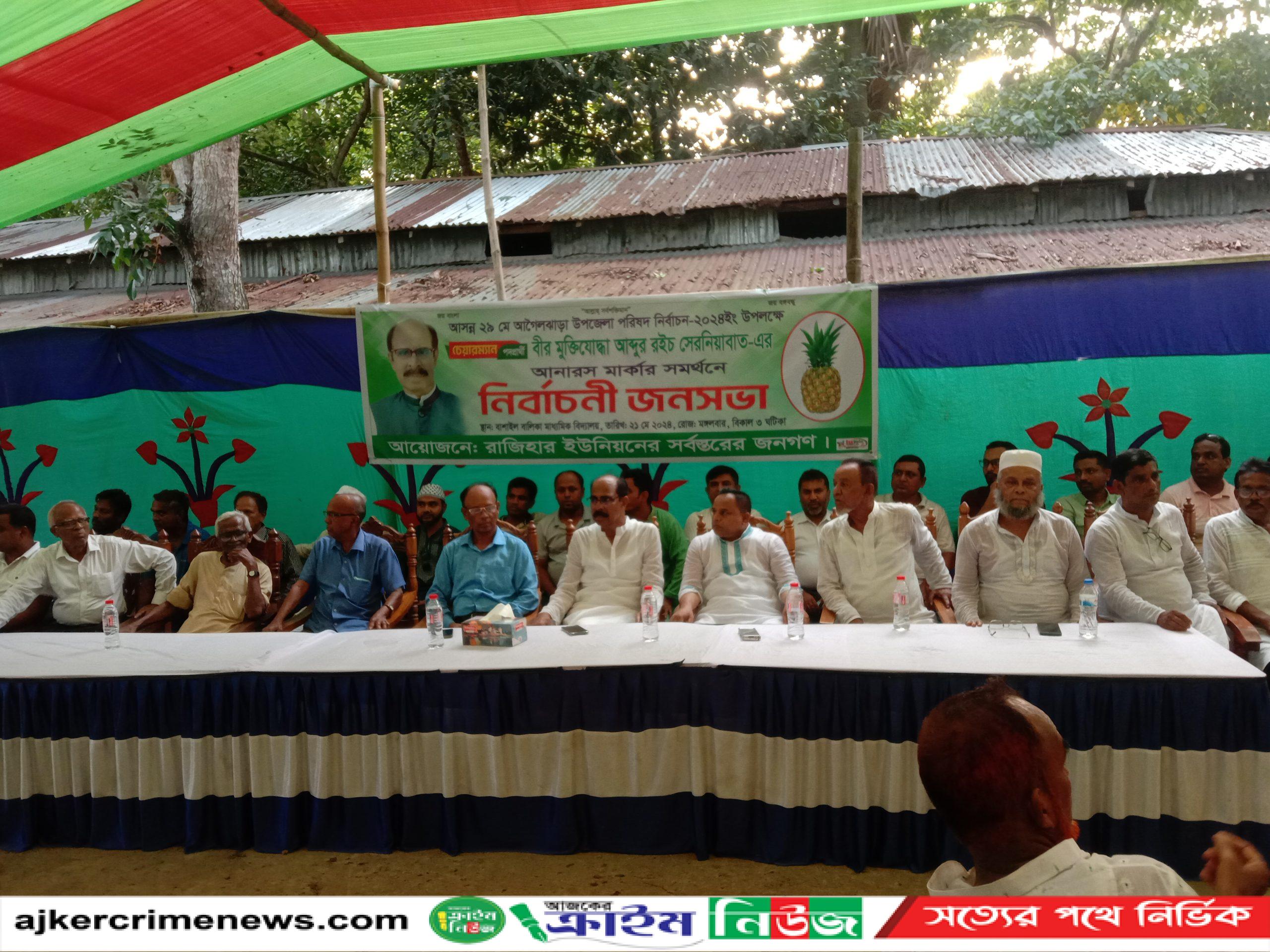 মুজিব আদর্শের পরিক্ষিত সৈনিক হিসেবে আব্দুর রইচ সেরনিয়াবাতকে ভোট দিয়ে বিজয়ী করুন। বরিশালের আগৈলঝাড়ায় উপজেলা পরিষদ নির্বাচনে তৃনমূল আওয়ামী লীগের মনোনীত চেয়ারম্যান প্রার্থী বীর মুক্তিযোদ্ধা আব্দুর রইচ সেরনিয়াবাত এর আনারস প্রতীকের সমর্থনে নির্বাচনী জনসভা অনুষ্ঠিত হয়েছে। ২১ মে মঙ্গল বার বিকেলে রাজিহার ইউনিয়নবাসীর আয়োজনে বাশাইল বালিকা মাধ্যমিক বিদ্যালয় মাঠে রাজিহার ইউনিয়ন আওয়ামী লীগের সভাপতি হরেকৃষ্ণ হালদারের সভাপতিত্বে আনারস প্রতীকের নির্বাচনী জনসভায় প্রধান বক্তা হিসেবে বক্তব্য রাখেন উপজেলা আওয়ামী লীগের সাধারণ সম্পাদক ও আনারস প্রতীকের উপজেলা নির্বাচনী কমিটির সদস্য সচিব আবু সালেহ মোঃ লিটন সেরনিয়াবাত। রাজিহার ইউনিয়ন আওয়মী লীগের সাধারণ সম্পাদক মোঃ মুরাদ হোসেন শিকদারের সঞ্চালনায় অন্যান্যদের মধ্যে আরও উপস্থিত ছিলেন উপজেলা আওয়ামী লীগের সভাপতি ও আনারস প্রতীকের নির্বাচন পরিচালনা কমিটির আহ্বায়ক সুনীল কুমার বাড়ৈ, আনারস প্রতীকের প্রার্থী বীর মুক্তিযোদ্ধা আব্দুর রইচ সেরনিয়াবাত, উপজেলা মহিলা আওয়ামী লীগের সভাপতি মলিনা রানী রায়, পয়সা মাধ্যমিক বিদ্যালয় এন্ড কলেজের অধ্যক্ষ মোঃ মিজানুর রহমান বাবু, উপজেলা আওয়ামী লীগের সহ-সভাপতি ও রাজিহার ইউপি চেয়ারম্যান মোঃ ইলিয়াস তালুকদার, বীর মুক্তিযোদ্ধা লিয়াকত আলী হাওলাদার আবুতাহের মিয়া, মোঃ বক্তিয়ার হোসেন শিকদার, শিক্ষক নেতা সোহরাব হোসেন বাবুল সেরনিয়াবাত, উপজেলা আওয়ামী লীগের যুগ্ম সাধারণ সম্পাদক মোঃ সাইদুল সরদার, মোঃ রফিকুল ইসলাম তালুকদার, বাশাইল মাধ্যমিক বিদ্যালয়ের প্রধান শিক্ষক নুরুল হক মিয়া, ধান ডোবা মাধ্যমিক বিদ্যালয়ের প্রধান শিক্ষক এইচ এম মানিক হাচান, বাশাইল মাধ্যমিক বিদ্যালয়ের সাবেক সভাপতি মোঃ এনায়েত হোসেন নান্নু, বি এম মনিরুল ইসলাম মন্নান ভূইয়া, বরিশাল বিভাগীয় সাংবাদিক ঐক্য পরিষদের সহ-সভাপতি ও দৈনিক বাংলাদেশের আলো দৈনিক হিরন্ময় পত্রিকার প্রতিনিধি বি এম মনির হোসেন, আওয়ামী লীগ নেতা নিকুঞ্জ লাল হালদার, মোঃ সিদ্দিকুর রহমান মৃধা, এইচ এম মতিউর রহমান, উপজেলা শ্রমিক লীগ সভাপতি এডভোকেট আবুল কাসেম সরদার, উপজো যুবলীগের সভাপতি কামরুজ্জামান সেরনিয়াবাত আজাদ, সাধারণ সম্পাদক মোঃ শহিদ তালুকদার, উপজেলা ছাত্রলীগের সভাপতি মিন্টু সেরনিয়াবাত, সাধারণ সম্পাদক জাকির হোসেন পাইক, রাজিহার ইউনিয়ন মহিলা আওয়ামী লীগের সভানেত্রী সেলিনা বেগম, রাজিহার ইউনিয়ন আওয়ামী লীগের যুগ্ম সাধারণ সম্পাদক মোঃ জাকির হোসেন তালুকদার, সাংগঠনিক সম্পাদক মোঃ মফিজুর রহমান ফকির, রাজিহার ইউনিয়ন সেচ্ছাসেবক লীগ সভাপতি মোঃ ফখরুল ইসলাম মামুন, রাজিহার ইউনিয়ন যুবলীগ সভাপতি জগদীশ 