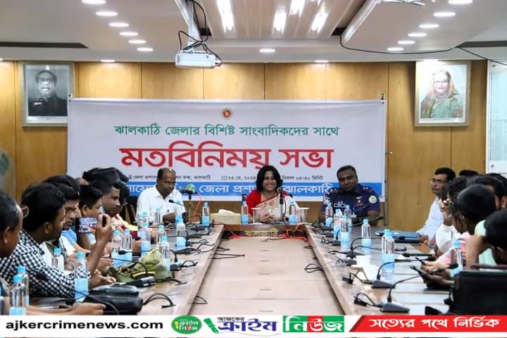 ঝালকাঠি প্রতিনিধি :ঝালকাঠিতে সুষ্ঠু ও শান্তিপুর্ণ পরিবেশে উপজেলা পরিষদ নির্বাচন সম্পন্ন করার পরে সাংবাদিকদের মতবিনিময় সভা করেন জেলা প্রশাসক ফারাহ্ গুল নিঝুম। বৃহস্পতিবার ২৩ শে মে সন্ধ্যা সাতটায় জেলা প্রশাসকের সম্মেলন কক্ষে মতবিনিময় সভা অনুষ্ঠিত হয়েছে ।এসময় উপস্থিত ছিলেন পুলিশ সুপার মোহাম্মদ আফরুজুল হক টুটুল, জেলা নির্বাচন কর্মকর্তা ও রিটার্নিং অফিসার মোহাম্মদ আ. ছালেক, অতিরিক্ত জেলা প্রশাসক (সার্বিক) রুহুল আমীন, অতিরিক্ত জেলা প্রশাসক (এডিএম) মামুন শিবলী, সদর উপজেলা নির্বাহী কর্মকর্তা অনুজা মন্ডল।