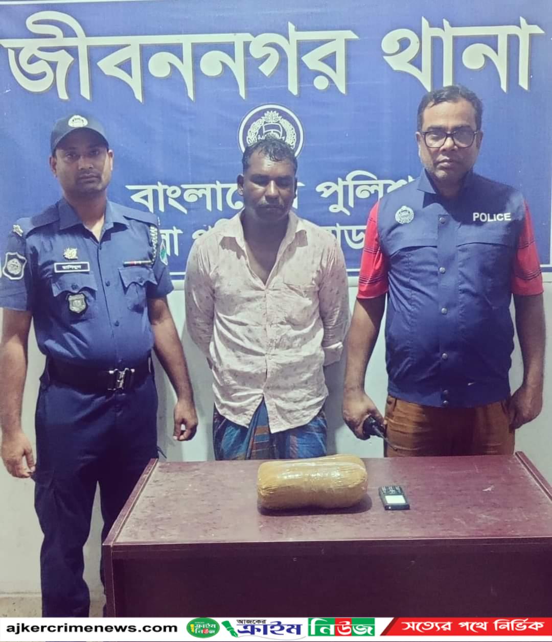 রবিবার রাতে জীবননগর থানার অফিসার ইনচার্জ এস.এম. জাবীদ হাসানের নেতৃত্বে এসআই(নি:) মোঃ জামাল হোসেন সঙ্গীয় অফিসার ফোর্স জীবননগর থানার সন্তোষপুর - আন্দুল বাড়ীয়া সড়কের পুলিশ বক্সের সামনে একই উপজেলার মাধব খালী গ্রামের পিরু মন্ডলের ছেলে হারুন অর রশিদ হারু (৪২)কে গ্রেফতার করে।পরে তার দেহ তল্লাসী করে বিশেষ কায়দায় রাখা ১কেজি মাদকদ্রব্য গাঁজা উদ্ধার করে। রাতে গ্রেফতারকৃত আসামীর বিরুদ্ধে জীবননগর থানায় মাদকদ্রব্য নিয়ন্ত্রণ আইনে একটি মামলা করা হয়েছে।