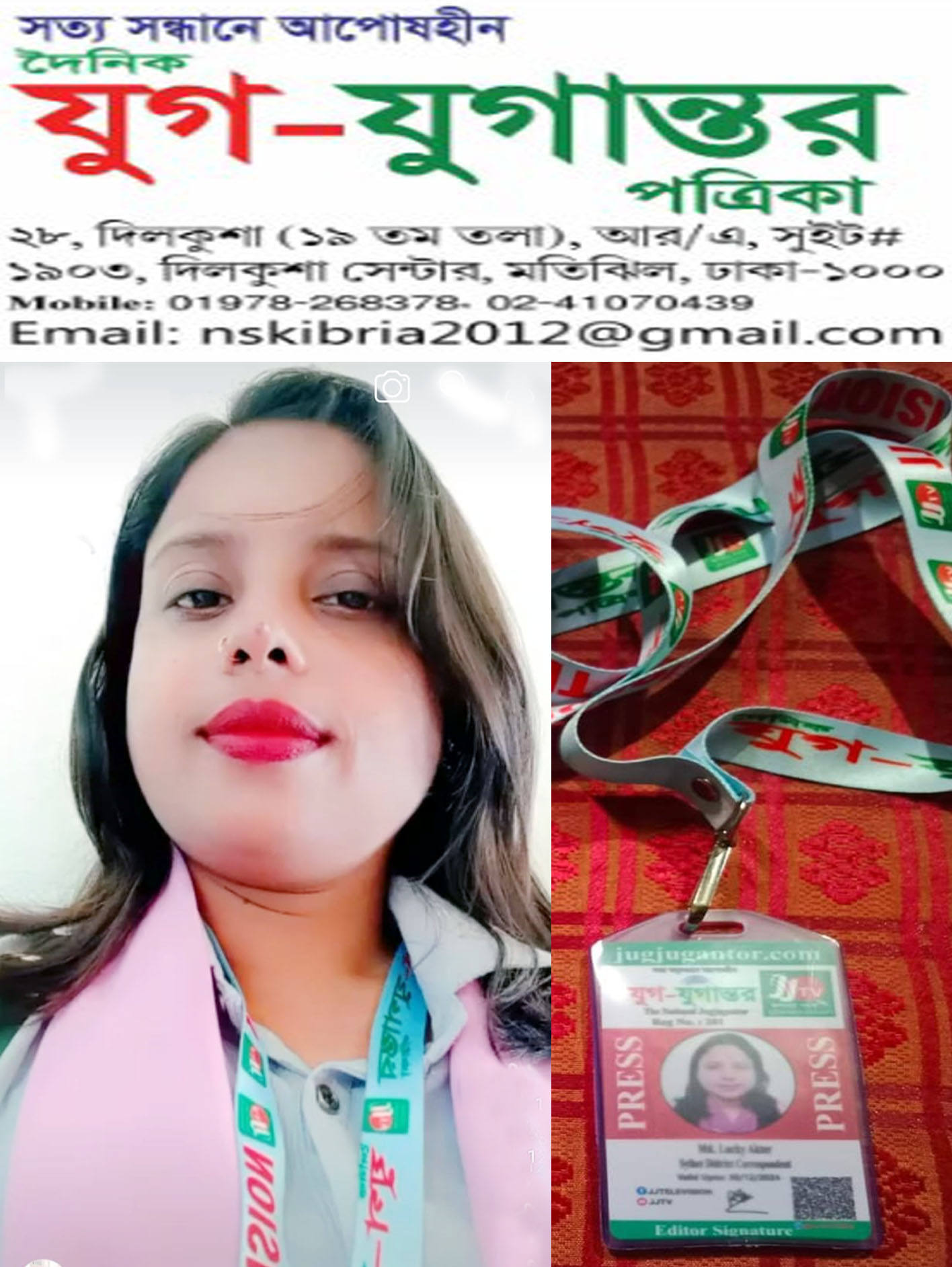 প্রেস বিজ্ঞপ্তি : সিলেটে জেলার সর্ব সাধারণের অবগতির জন্য জানানো যাচ্ছে যে, জাতীয় দৈনিক যুগ যুগান্তর পত্রিকার সিলেট জেলা প্রতিনিধি লাকি আক্তার ওরফে লাকি আহমেদ কে বহিস্কার কারা হলো। এ বিজ্ঞপ্তি প্রকাশিত হওয়ার পর থেকে লাকি আহেমদ যুগ যুগান্তর পত্রিকার সিলেট জেলার কোন প্রতিনিধি বা কোন সংবাদিক নয়। সে উক্ত পত্রিকার সিলেটের কোথাও পরিচয় দিলে নিকটবর্তী আইন শৃঙ্খলা বাহিনী কে অবহিত করার জন্য বিশেষ ভাবে অনুরোধ জানাচ্ছি।
