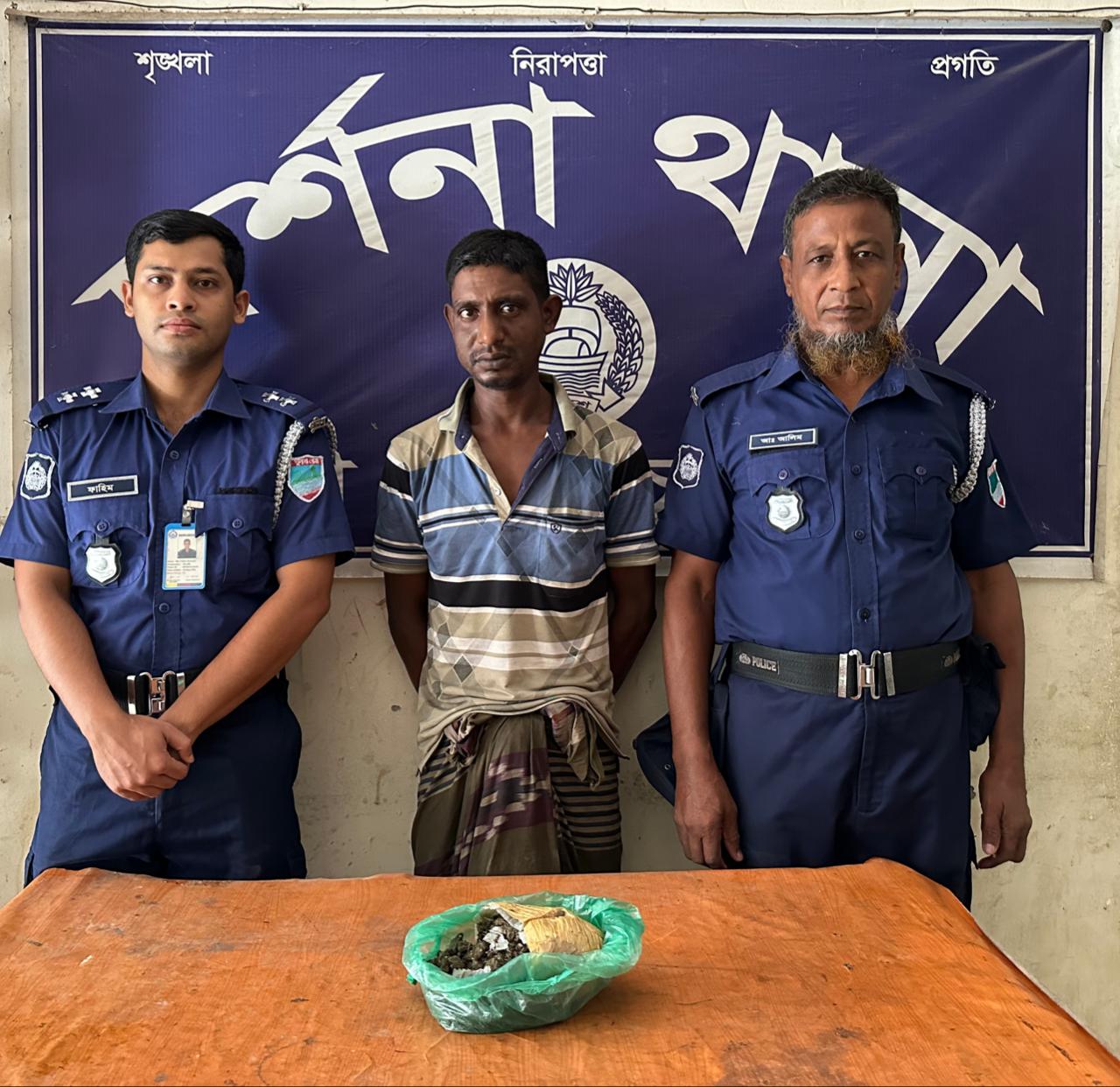 সোমবার ভোরে চুয়াডাঙ্গার দর্শনা থানার অফিসার ইনচার্জ বিপ্লব কুমার সাহার তত্বাবধানে দর্শনা থানার এসআই(নিঃ) মোঃ সেকেন্দার আবু জাফর সঙ্গীয় অফিসার গোপন সংবাদের ভিত্তিতে পৌর এলাকার আজমপুরের জোর আলী মিজির ছেলে আফজাল হোসেন ওরফে কালু(৩৯)'র বাড়িতে অভিযান চালায়। এসময় কালুর বসত ঘরের শয়ন কক্ষের খাটের নিচ হতে অবৈধ মাদকদ্রব্য ৫০০ গ্রাম গাঁজা উদ্ধার পূর্বক জব্দ ও কালুকে গ্রেফতার করে।সকালে গ্রেফতারকৃত কালুর বিরুদ্ধে দর্শনা থানায় মামলা করা হয়। উল্লেখ্য আজমপুরে কালুর বাড়ি রাতে বিভিন্ন এলাকার মাদক ক্রেতারা এসে মাদক ক্রয় করে বলে এলাকাবাসি জানায়।বেশ কয়েক বছর ধরে এলাকায় মাদক কারবার করে আসছিল। কেউ কিছু বললে সকলকে ম্যানেজ করে এ ব্যবসা করে আসছিল বলে নিজেকে জহির করতো।