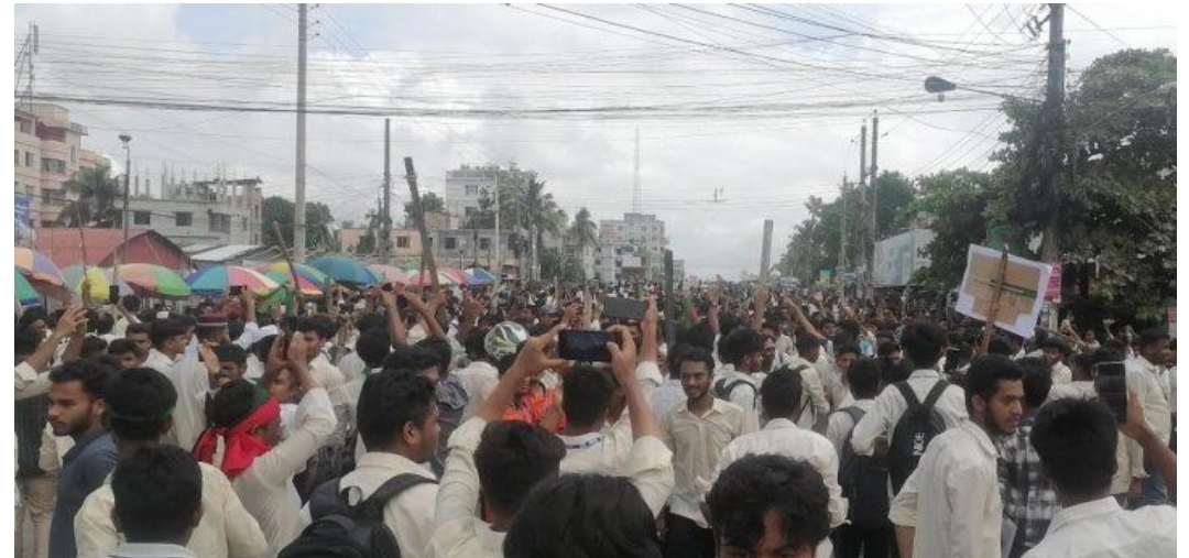 মঙ্গলবার (১৬ জুলাই) বেলা ১১টার দিকে বরিশাল-ঢাকা মহাসড়ক অবরোধ করেন আন্দোলনকারীরা। এর মধ্যে সরকারি ব্রজমোহন কলেজ, সৈয়দ হাতেম আলী কলেজ, সরকারি বরিশাল কলেজসহ আরও কয়েকটি কলেজের শিক্ষার্থীরা নথুল্লাবাদ বাস টার্মিনাল ও চৌমাথায় বরিশাল সরকারি পলিটেকনিক ইনস্টিটিউটের শিক্ষার্থীরা সড়ক অবরোধ করেন। অবরোধ কর্মসূচিতে বিভিন্ন স্কুলের শিক্ষার্থীরাও যোগ দিয়েছে।