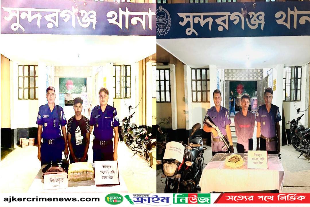 গাইবান্ধার সুন্দরগঞ্জ থানা পুলিশের পৃথক পৃথক অভিযানে ৫ কেজি গাঁজা, ১টি মোটরসাইকেলসহ ২ মাদক ব্যবসায়ীকে গ্রেফতার করেছেন।