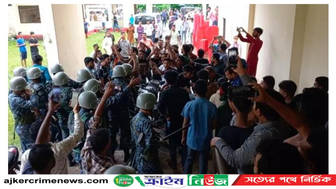 এদিকে, প্রথম দফার সভা সংক্ষিপ্ত হয়। তবে এ সময় শিল্পকলার বাইরে একদল বিক্ষিপ্ত শিক্ষার্থী মীর নিলয়কে ছাত্রলীগের দোসর আখ্যায়িত করে শ্লোগান দিতে থাকে এবং এ সময় তারা সদর উপজেলার নির্বাহী কর্মকর্তা শামীম মিয়াকে নিলয় গ্রুপের মাধ্যমে সুবিধা অর্জনের পায়তারার অভিযোগ তুলে তার বিরুদ্ধেও শ্লোগান দেন। পরে বিকেলে দ্বিতীয় দফার সভা শুরু হলে সভাস্থলে বরগুনা থানাপাড়ার অনিক নামে একজন ধারালো অস্ত্র নিয়ে শিল্পকলায় প্রবেশ করে অপ্রীতিকর ঘটনা ঘটানোর চেষ্টাকালে নিরাপত্তা বাহিনীর সদস্যরা তাকে আটক করেন।