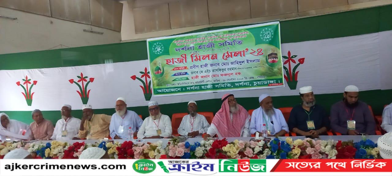 মাহমুদ হাসান রনি, চুয়াডাঙ্গা প্রতিনিধিঃচুয়াডাঙ্গার দর্শনায় হাজি সমিতির মিলন মেলা হয়েছে। শনিবার সকাল ১০ টায় দর্শনা অডিটেরিয়ামে অনুষ্ঠিত মিলন মেলার আলোচনা পর্বের সভাপতিত্ব করেন হাজি সমিতির সভাপতি হাজি ফজলুর হক। আলোচনা করেন, হাজি জাহিদুল ইসলাম, সমিতির সহসভাপতি হাজি অহিদুজ্জামান পল্টু, সহসম্পাদক হাজি আব্দুর রাজ্জাক, কোষাধ্যক্ষ হাজি আব্দুল মমিন, হাজি মাও নুরুল ইসলাম, হাজি আব্দুর রহমান, হাজি ডাঃ রফিকুল ইসলাম প্রমুখ। অনুষ্ঠান পরিচালনা করেন হাজি আমিনুল ইসলাম।