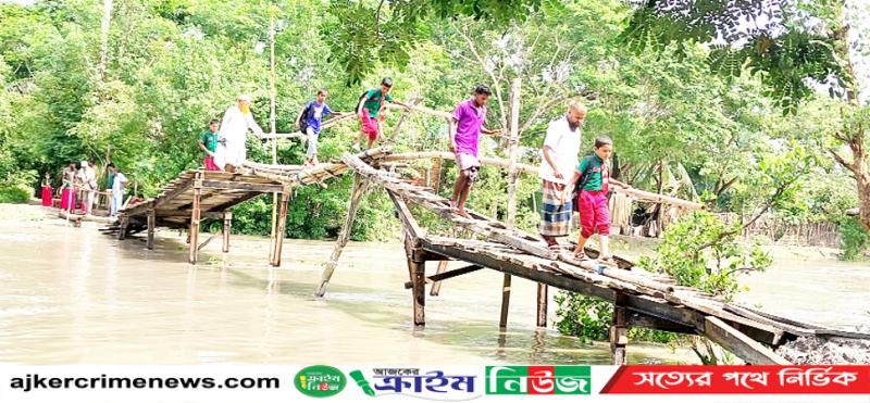 এস. এম সাইফুল ইসলাম কবির, বাগেরহাট:বিশ্বের বৃহত্তম ম্যানগ্রোভ বন সুন্দরবনের উপকূলীয় বাগেরহাটের মোরেলগঞ্জে মঠবাড়ী গ্রামের বড় খালের পুলটি এক বছর পূর্বে ভেঙে গেলেও অদ্যাবধি পর্যন্ত হয়নি সংস্কার। ১০ গ্রামের মানুষের পারাপারে দুর্ভোগ এখন চরমে। স্কুল শিক্ষার্থীসহ ৭ হাজার মানুষের চলাচলের একমাত্র ভরসা এ ভাঙা পুলটি। জনপ্রতিনিধিসহ সংশ্লিষ্ট কর্তা-ব্যক্তিদের নেই কোনো নজরদারি।