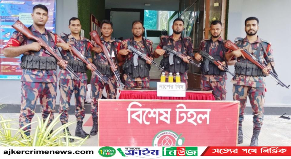 ১৭ অক্টোবর বৃহস্পতিবার দুপুরে চুয়াডাঙ্গা বিজিবি-৬ ব্যাটালিয়নের অধিনায়ক কর্নেল সাঈদ মোহাম্মদ জাহিদুর রহমানের নির্দেশে বিশেষ টহল দলের হাবিলদার মো: মুরাদুল ইসলাম ফোর্স নিয়ে দর্শনা হল্ট স্টেশনে মহানন্দা এক্সপ্রেসে এক অভিযান চালায়।এসময় ট্রেনের একটি বগিতে পরিত্যক্ত অবস্থায় একটি ব্যাগ উদ্ধার করে।পরে ব্যাগের ভিতর হতে তিনটি কাচের বোতলে ২ কোটি টাকা মূল্যের ৩শ’ গ্রাম ওজনের বিষাক্ত সাপের বিষ উদ্ধার হয়।