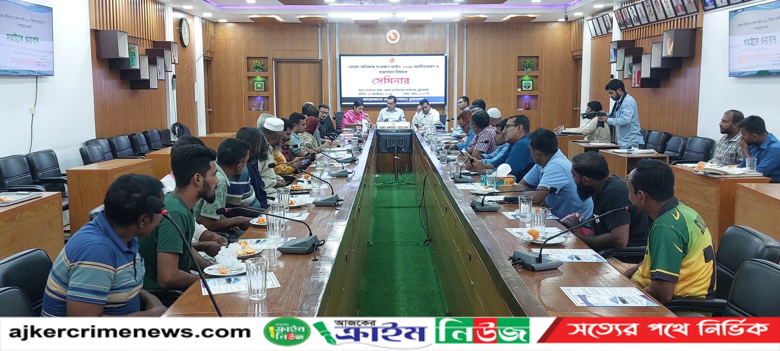 চুয়াডাঙ্গায় ভোক্তা অধিকার সংরক্ষণ আইন-২০০৯ অবহিতকরণ ও বাস্তববায়ন বিষয়ক সেমিনার অনুষ্ঠিত হয়েছে।