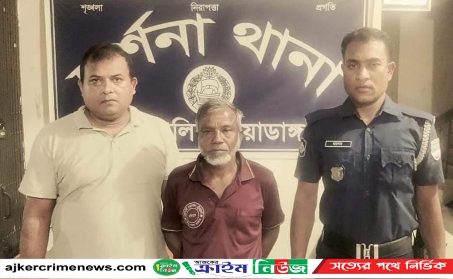 শুক্রবার রাতে দর্শনা থানার অফিসার ইনচার্জ মুহম্মদ শহীদ তিতুমীর এর নেতৃত্বে এসআই(নিঃ) অনুজ কুমার সরকার সঙ্গীয় অফিসার গোপন সংবাদের ভিত্তিতে দর্শনা থানার মদনা গ্রামে অভিযান চালায়। এসময় ধর্ষণ মামলার আসামী জুড়ান মন্ডলের ছেলে আহম্মদ আলী(৫২)কে গ্রেফতার করে। উল্লেখ দুপুরে মদনা গ্রামের আঃ রহমানের ছেলে মোঃ নাজমুল হক (৩৫) থানায় এসে এক এজাহার দাখিল করে।এজাহারে সে জানায় তার মেয়ে মোছাঃ নাজিরা খাতুন (১২) শাপলা তোলার জন্য মদনা দক্ষিণ নসকদুয়া বিলে যাওয়ার পথে মোঃ আহম্মেদ আলীর মরিচ ক্ষেতে পৌছালে সে তাকে মরিচ দেওয়ার প্রলোভন দেখিয়ে পাশ্ববর্তী মোঃ মিজানুর আলীর হলুদ ক্ষেতের মধ্যে নিয়ে গিয়ে ইচ্ছার বিরুদ্ধে মুখ চেপে ধরে জোর পূর্বক ধর্ষণ করে।