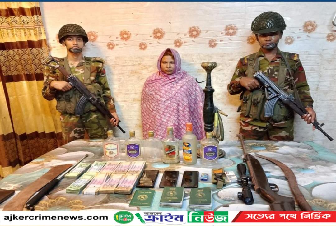 বৃহস্পতিবার দিবাগত রাত ১ টায় গোয়েন্দা তথ্যের ভিত্তিতে চুয়াডাঙ্গা আর্মি ক্যাম্পের একটি দল চুয়াডাঙ্গা পৌর এলাকার শ্মশানপাড়ার বটে আলীর মেয়ে, জেলা মহিলালীগের সদস্য ও জীবননগর ইসলাম পাড়ার মিরাজুল ইসলামের স্ত্রী রুপা খাতুন(৩৫) 'র শ্বশান পাড়ার নিজ বাড়িতে অভিযান চালিয়ে গ্রেফতার করা হয়।এ সময় রুপার বাড়ি থেকে পয়েন্ট ২২ মি:মি: রাইফেল, অপটিক্যাল সাইট, নগদ সাড়ে ৭ লাখ টাকা, ৩টি মোবাইল, ২টি দেশীয় অস্ত্র (কিরিচ), ১টি হুক্কা এবং ৬টি মদের বোতল উদ্ধার করে।এছাড়া আলোচিত এই নারী রুপার বিরুদ্ধে নিজ এলাকায় দীর্ঘদিন ধরে অবৈধ মাদকব্যবসা ও পতিতাবৃত্তির অভিযোগ ছিল।সম্প্রতি রুপার বিরুদ্ধে মাদকের ব্যবসা, নারীদের দিয়ে দেহব্যবসা, নিজে একাধিক বিবাহ করে প্রতারণাসহ অসংখ্য অভিযোগ নিয়ে বিভিন্ন পত্রিকা সংবাদ প্রকাশিত হয়।