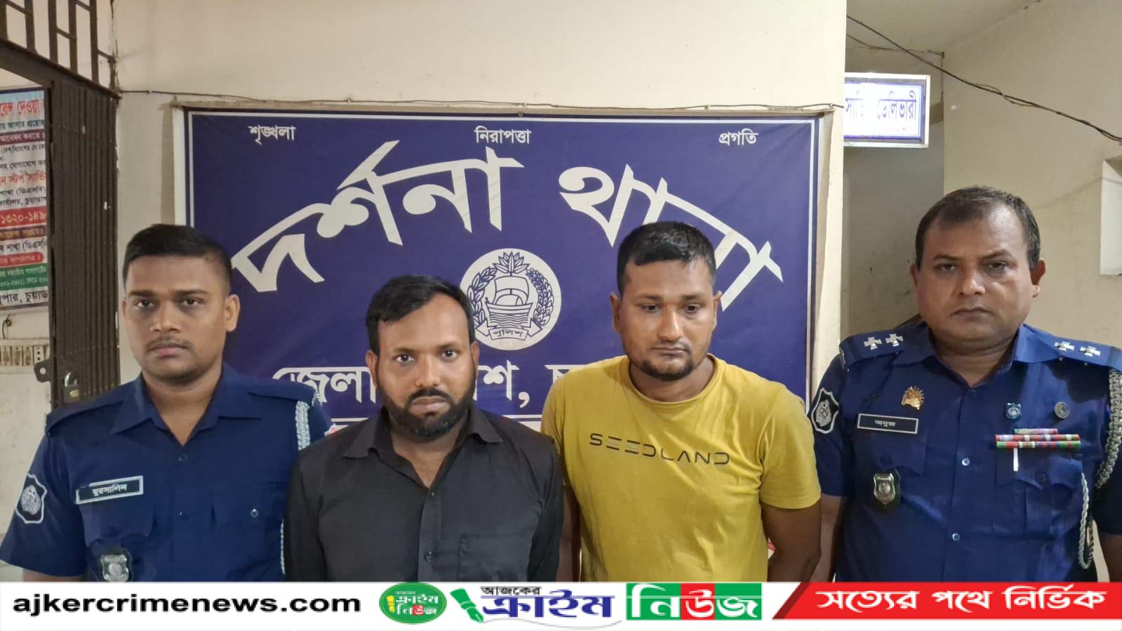 চুয়াডাঙ্গা প্রতিনিধিঃ চুয়াডাঙ্গার দর্শনায় পলাতক আসামীসহ মাদক রাখার দায়ে দু'জন গ্রেফতার হয়েছে। শুক্রবার সকালে দর্শনা থানার অফিসার ইনচার্জ মুহম্মদ শহীদ তিতুমীর এর নেতৃত্বে দর্শনা থানা এলাকায় অভিযান চালায়।এসময় হরিশচন্দ্রপুর গ্রামের মোঃ ইনজিল হোসেনের ছেলে জিআর-৯৯/২৪ (দর্শনা), প্রসেস নং-৪৪১/২৪ এর পরোয়ানাভুক্ত আসামী মোঃ আব্দুস সালাম (৩৭) কে গ্রেফতার করে। অপর দিকে দামুড়হুদা ভূমি কর্মকর্তা এক মোবাইল কোর্টের মাধ্যমে আকুন্দবাড়ীয়া স্কুল পাড়ার মোঃ আলাউদ্দিনের ছেলে মোঃ জাহাঙ্গীর হোসেন(৩৫)কে ২ বোতল ফেনসিডিলসহ আটক করে।পরে জাহাঙ্গীর কে মোবাইল কোর্টের মাধ্যমে ২ মাসের সাজা প্রদান করা হয়।