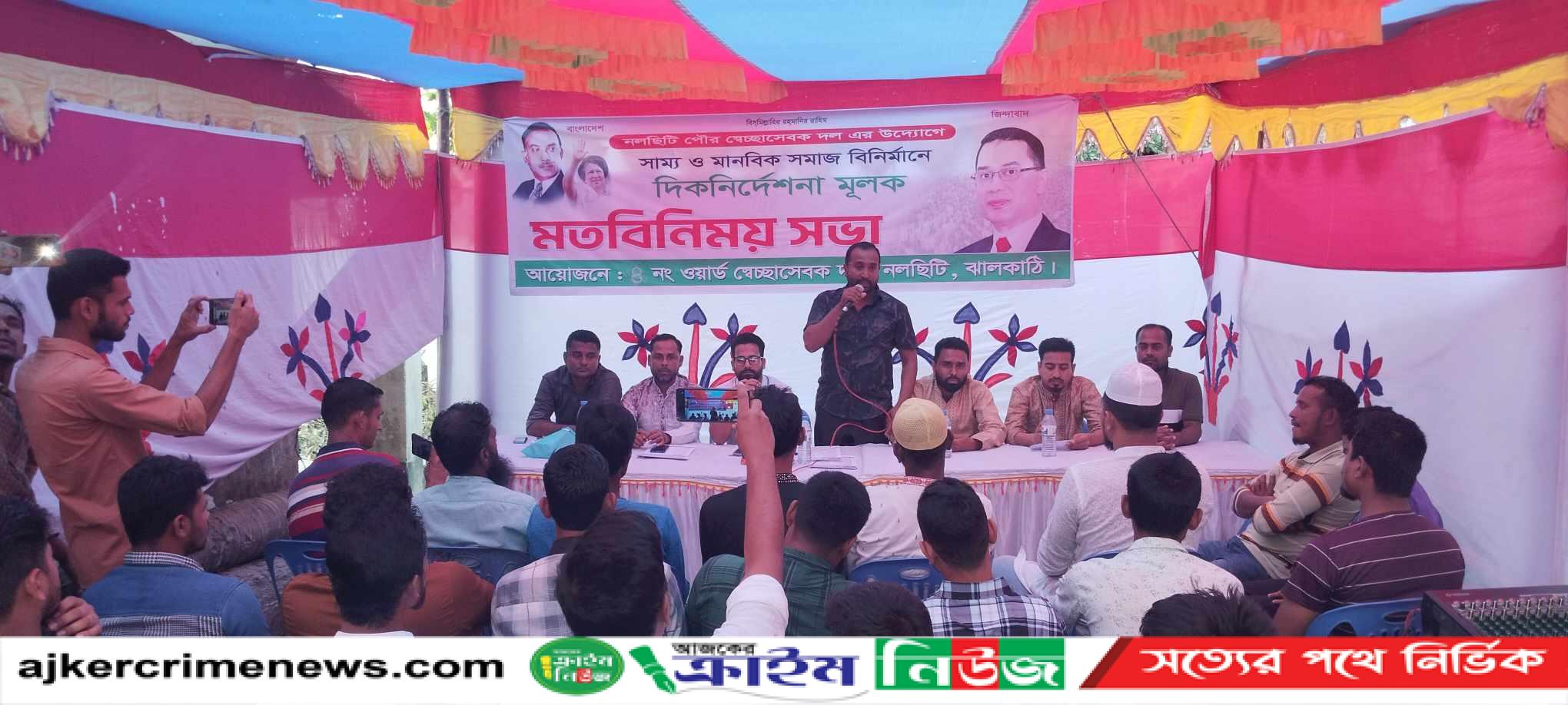 ঝালকাঠি প্রতিনিধি :ঝালকাঠির নলছিটিতে জাতীয়তাবাদ দল বিএনপির অঙ্গ সংগঠন পৌর স্বেচ্ছাসেবক দলের ৪ নং ওয়ার্ড কমিটির আয়োজনে এক মতবিনিময় সভা অনুষ্ঠিত হয়েছে। শুক্রবার( ১৫ নভেম্বর) বিকেলে পৌর এলাকার ৪ নং ওয়ার্ডের আবাসন এলাকায় এ মতবিনিময় সভা অনুষ্ঠিত হয়।