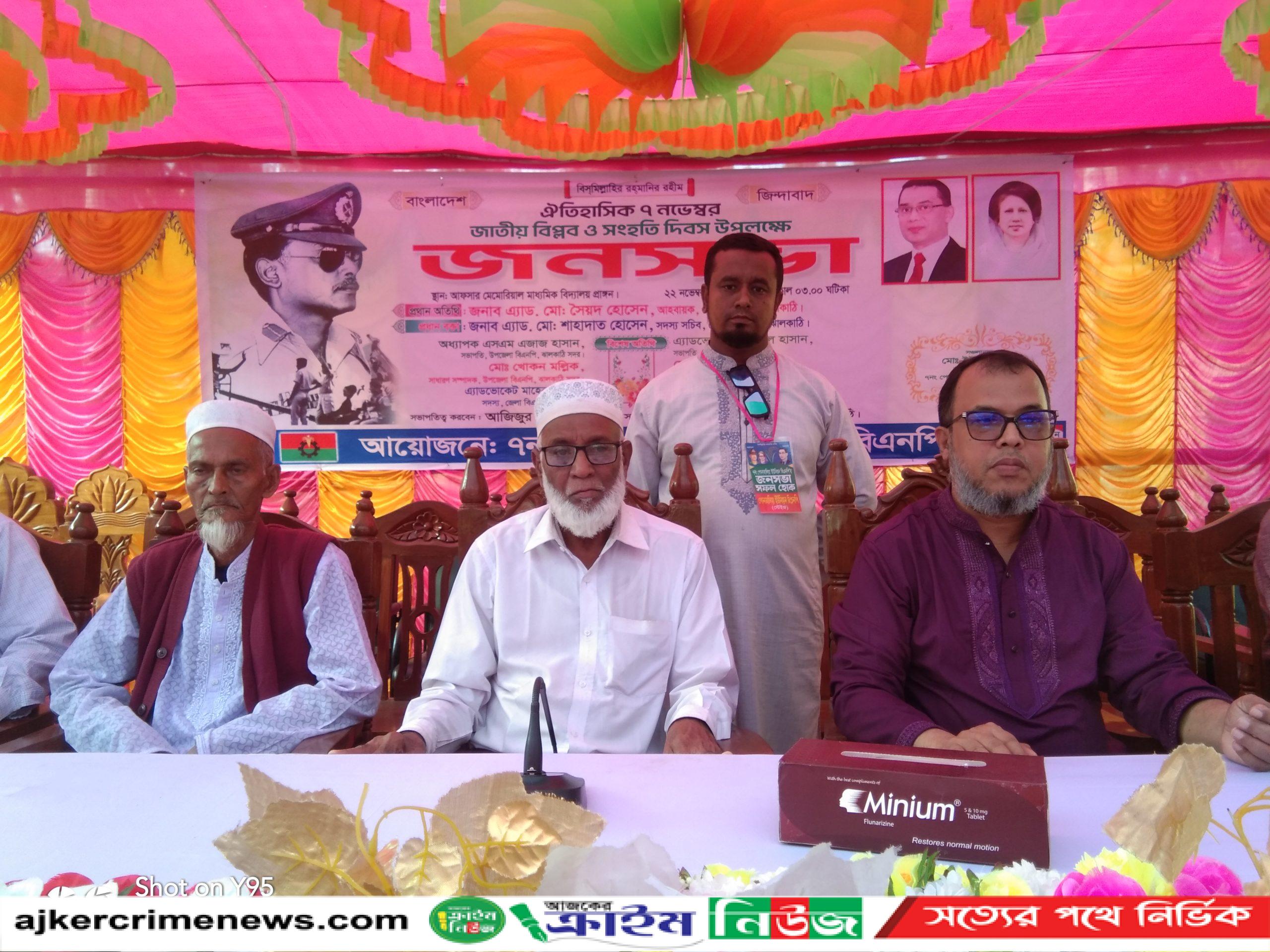 ঝালকাঠি প্রতিনিধি :৭ ই নভেম্বর বিপ্লব ও সংহতি দিবস উপলক্ষে ২২শে নভেম্বর শুক্রবার বিকেলে ৭নং পোনাবালিয়া ইউনিয়নের আফছার মেমোরিয়াল মাধ্যমিক বিদ্যালয়ের মাঠে বিএনপির জনসভা অনুষ্ঠিত হয়েছে।