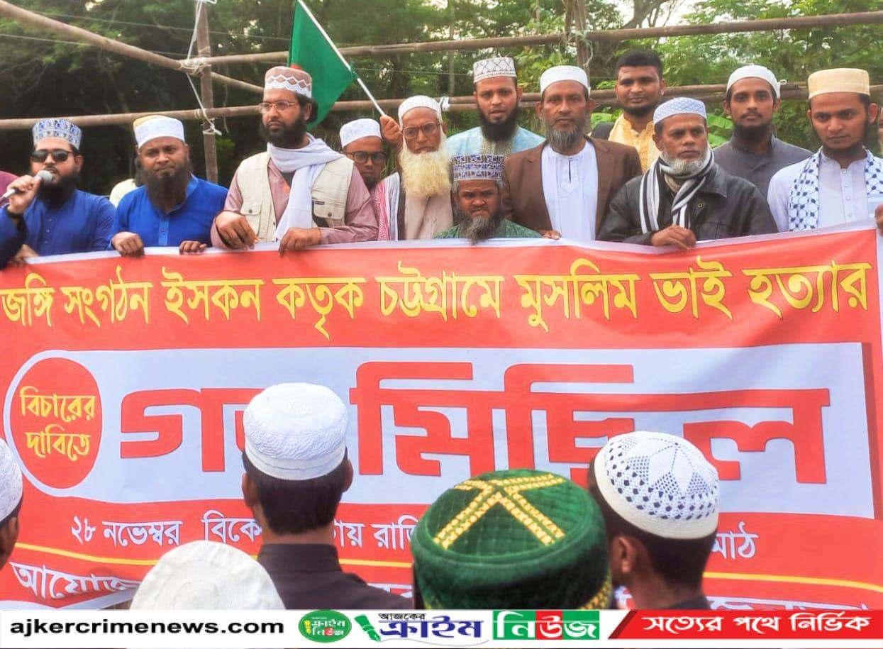 বরিশালের আগৈলঝাড়া উপজেলার রজিহার ইউনিয়নে ইসকন নিষিদ্ধের দাবিতে বিক্ষোভ মিছিল ও গণ-সমাবেশ অনুষ্ঠিত হয়েছে।মিছিল ও সমাবেশে সভাপতিত্ব করেন হাফেজ মাওলানা নাজমুস সাকিব, সঞ্চালনায় ছিলেন হাফেজ মাওলানা শফিকুল ইসলাম, প্রধান অতিথির বক্তব্য রাখেন মাওলানা জামান সরোয়ার জামিল, বিশেষ অতিথির বক্তব্য রাখেন মাওলানা আল আমিন, বক্তারা বলেন আমরা মন্দির পাহাড়া দিয়েছি তার বিনিময়ে বেরিষ্টার আলিফকে নির্মম ভাবে শহীদ করেছে এদের আইনের আওতায় এনে দৃষ্টান্তমূলক শাস্তির দাবি জানান আর ইসকন সন্ত্রাসী সংগঠন হিসেবে ওদেরকে নিষিদ্ধ করার দাবি জানান।