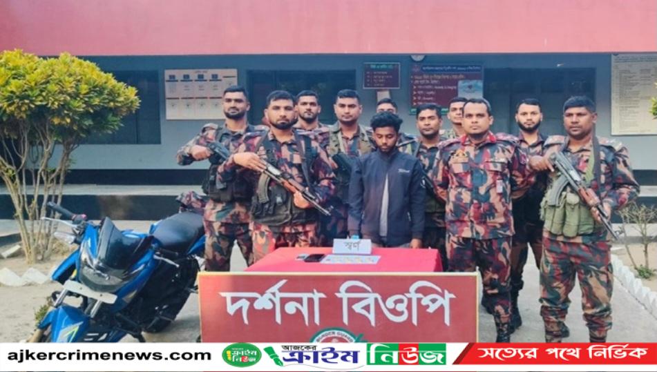 চুয়াডাঙ্গা-৬ বিজিবির পক্ষ থেকে রবিবার সন্ধ্যা সাড়ে ৬টায় এক প্রেস বিজ্ঞপ্তির মাধ্যমে গণমাধ্যম কর্মীদেরকে জানায়, দর্শনা থানার অন্তর্গত দর্শনা বিওপির আওতাধীন এলাকা দিয়ে স্বর্ণের একটি চালান পাচার করা হবে। এ সংবাদের ভিত্তিতে চুয়াডাঙ্গার দর্শনা বিওপির টহল কমান্ডার নায়েক মো. জিয়াউর রহমান সঙ্গীয় ফোর্স নিয়ে দামুড়হুদার ডুগডুগি বাজারে রাস্তার পাশে অবস্থান নেয়। বেলা ২ টার সময় সন্দেহভাজন এক ব্যক্তিকে মোটরসাইকেল যোগে ওই এলাকা দিয়ে অতিক্রম করতে দেখে তাকে গতিরোধ করতে গেলে সে পালানোর চেষ্টা কালে বিজিবির টহল দলের হাতে আটক হয়। পরে তার ব্যবহৃত মোটরসাইকেলটি তল্লাশি করে মোটরসাইকেলের হেড লাইটের কভারের মধ্যে কালো স্কচটেপ দ্বারা মোড়ানো অবস্থায় ১ কেজি ১শ৭৮ গ্রাম ওজনের ৯ টি স্বর্ণের বার উদ্ধার করে। যারা আনুমানিক মূল্য প্রায় দেড় কোটি টাকা।আটককৃত ব্যক্তি দর্শনা আজমপুরের মটরসাইকেল মিস্ত্রি রফিকুল ইসলামের কলেজ পড়ুয়া ছেলে রুহুল আমিন (২১)।